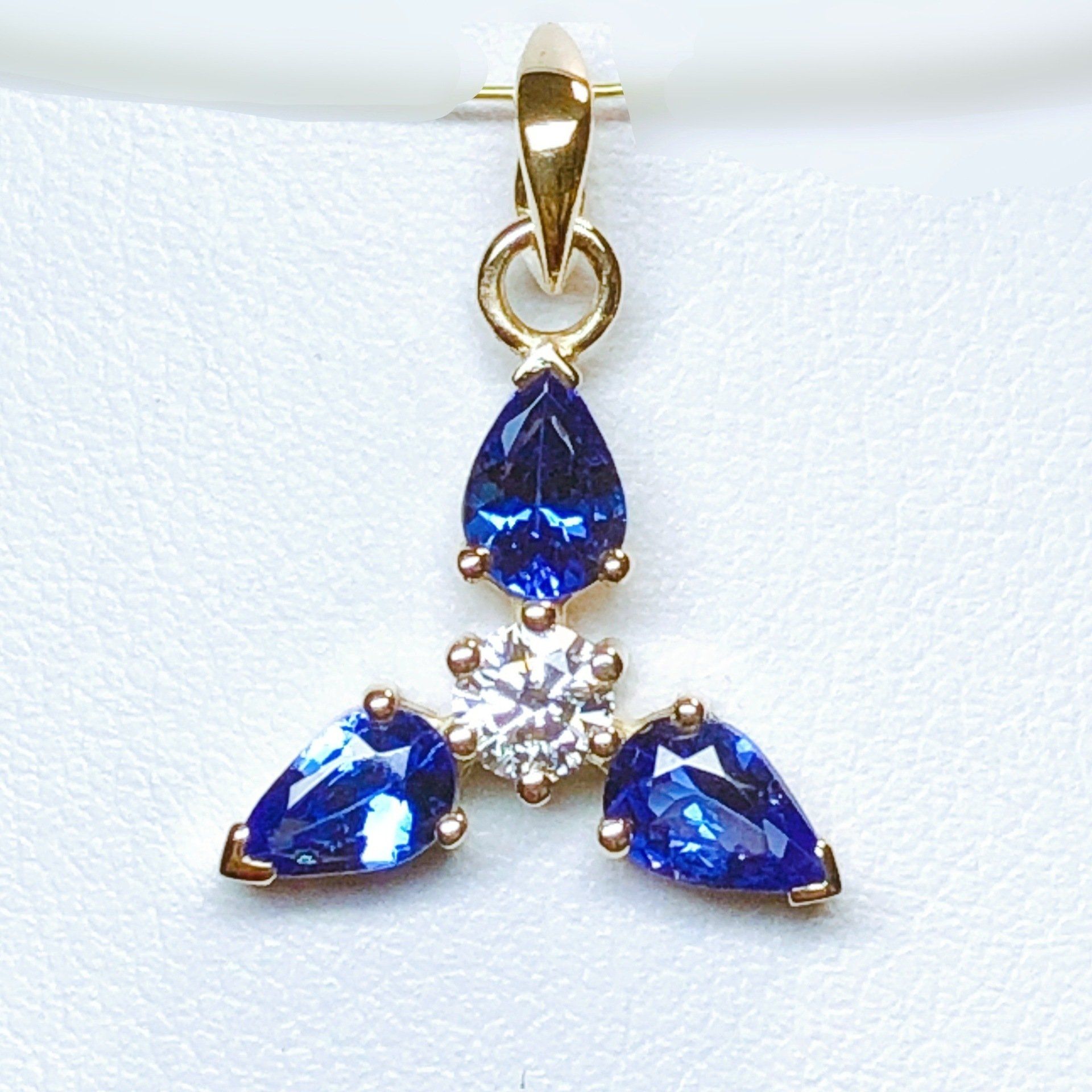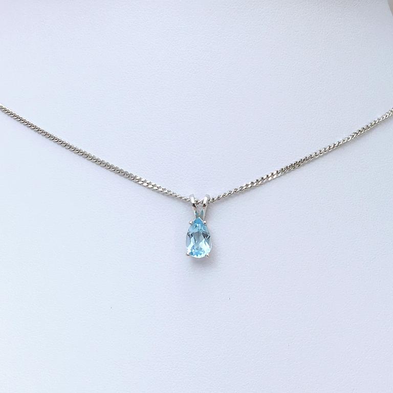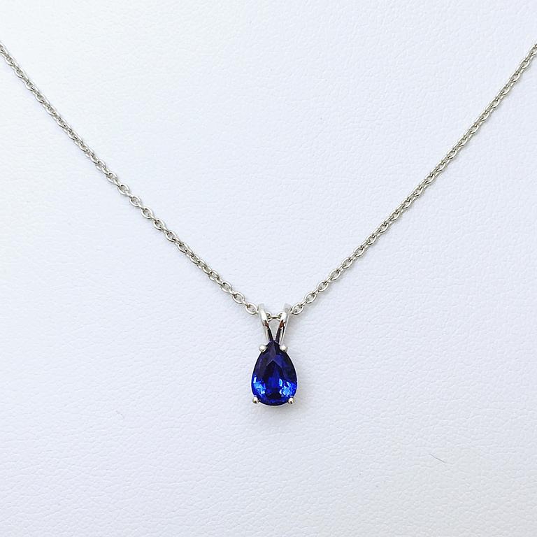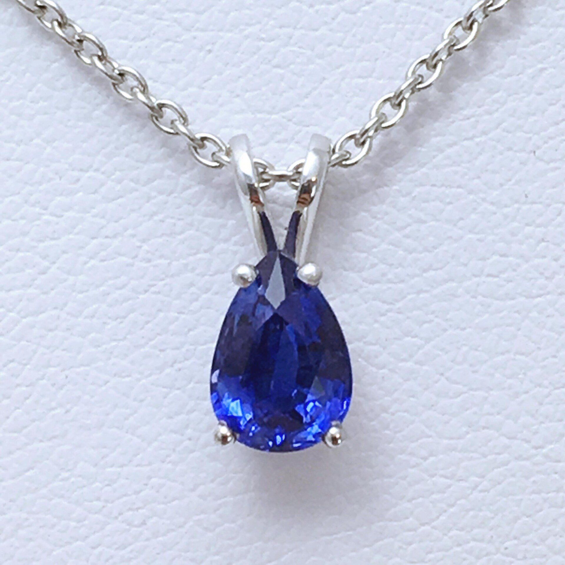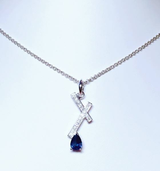 Pendentif poire en or blanc 750 millième, serti d'un saphir bleu.