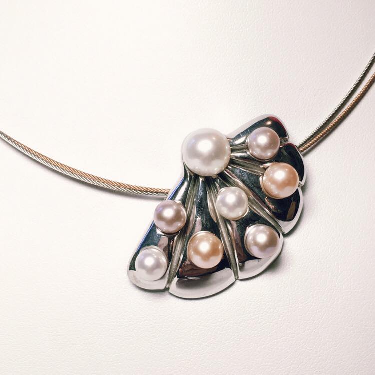 Pendentif en or blanc 750 millième et perles de culture d'eau douce.
