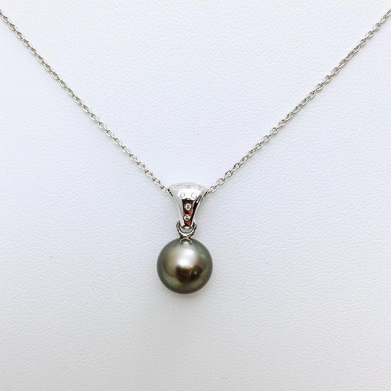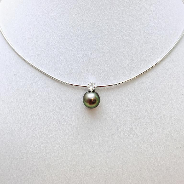 Pendentif en or blanc 750 millième, diamant et perle de Tahiti.