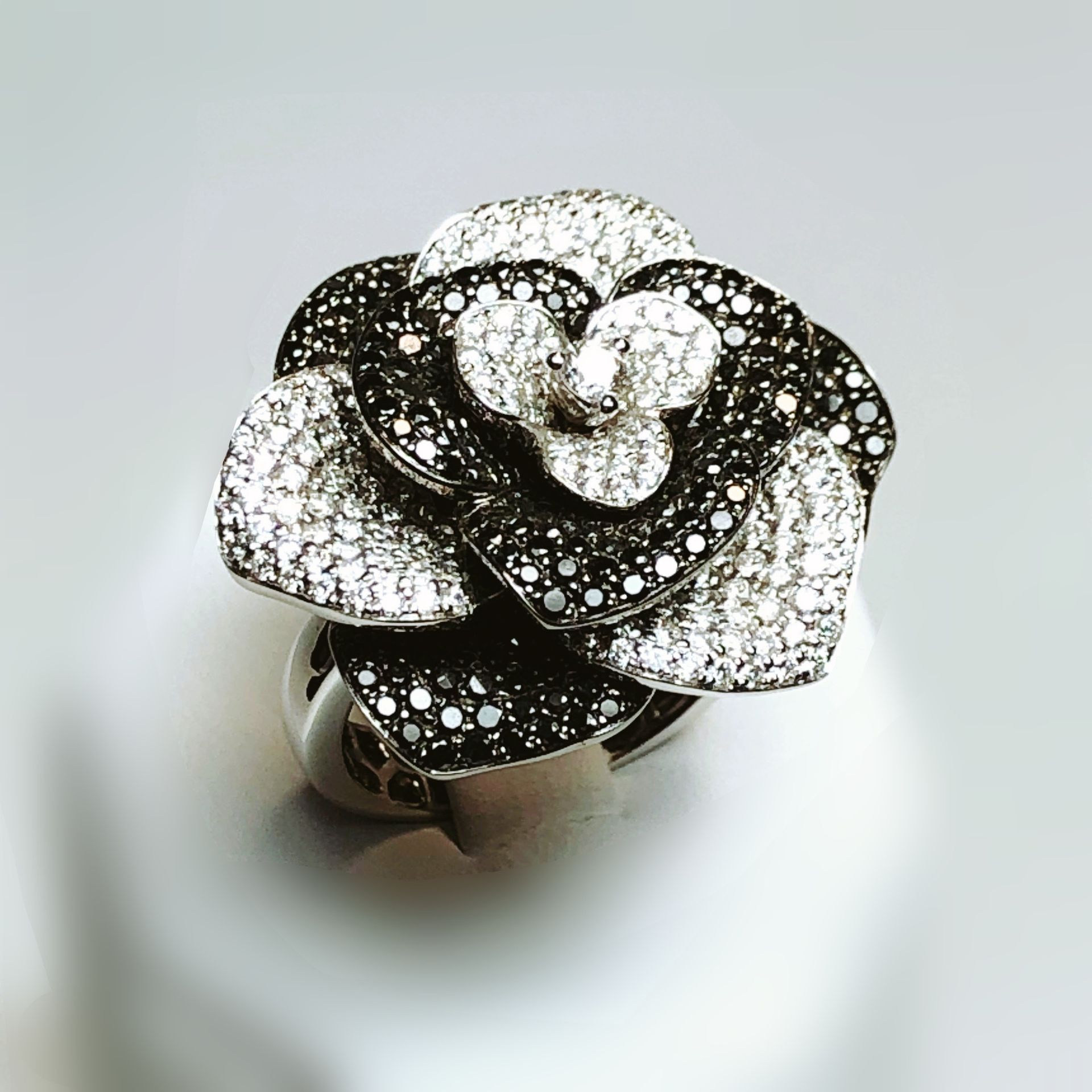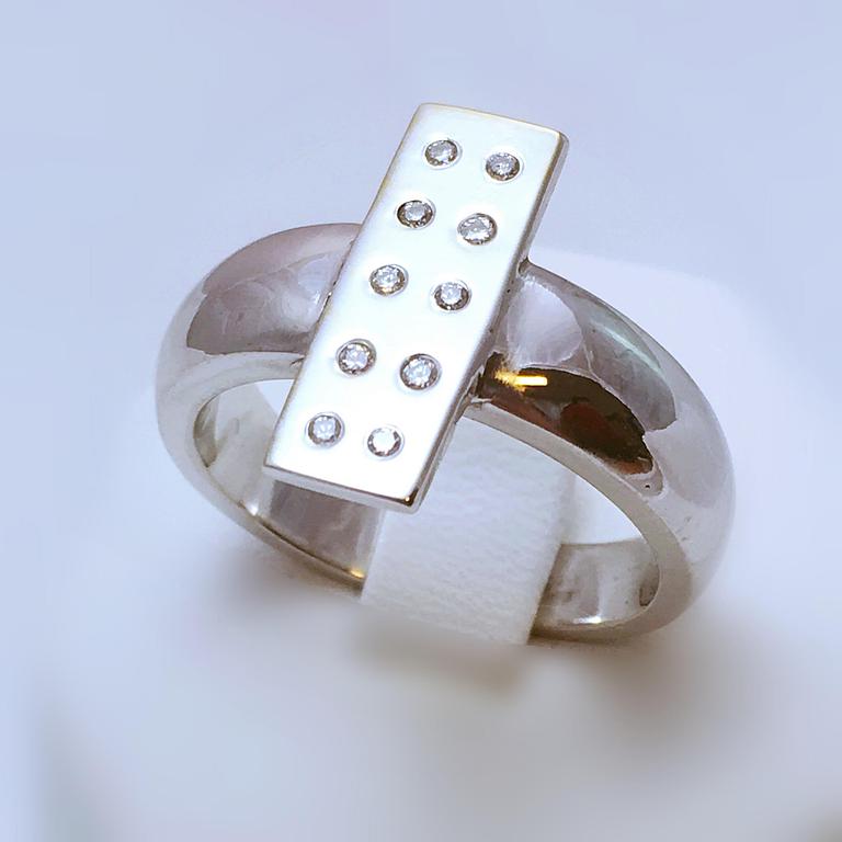 Projet 3D d'une bague en or blanc 750 millième et diamants.