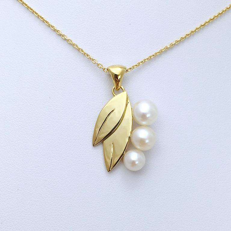 Pendentif feuilles en or jaune 750 millième et perles de culture d'eau douce.