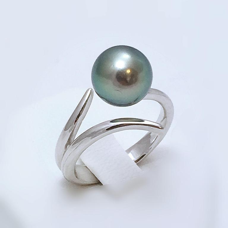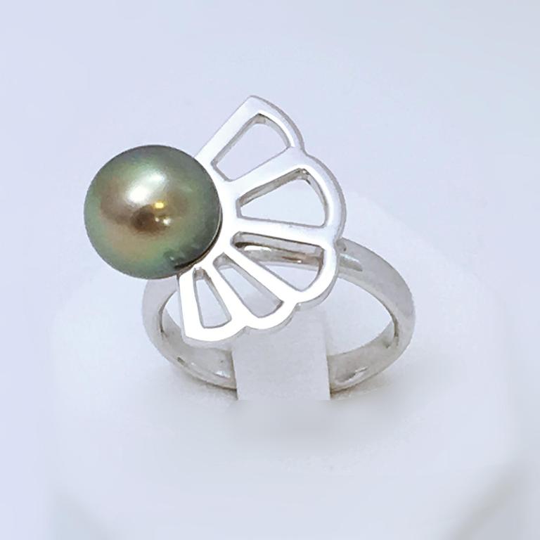 Bague en or blanc 750 millième et perle de Tahiti.