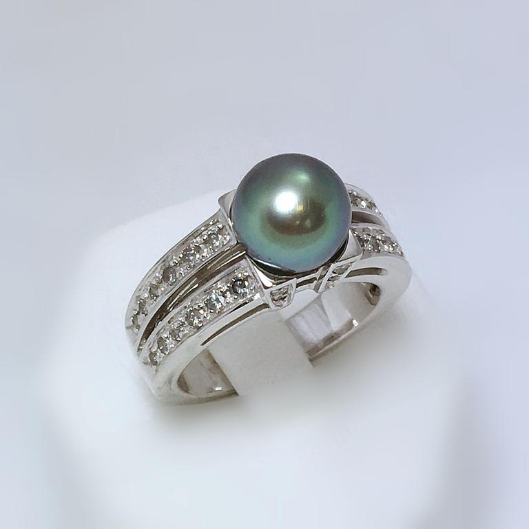 Bague or blanc 750 millième, perle de Tahiti et diamants.