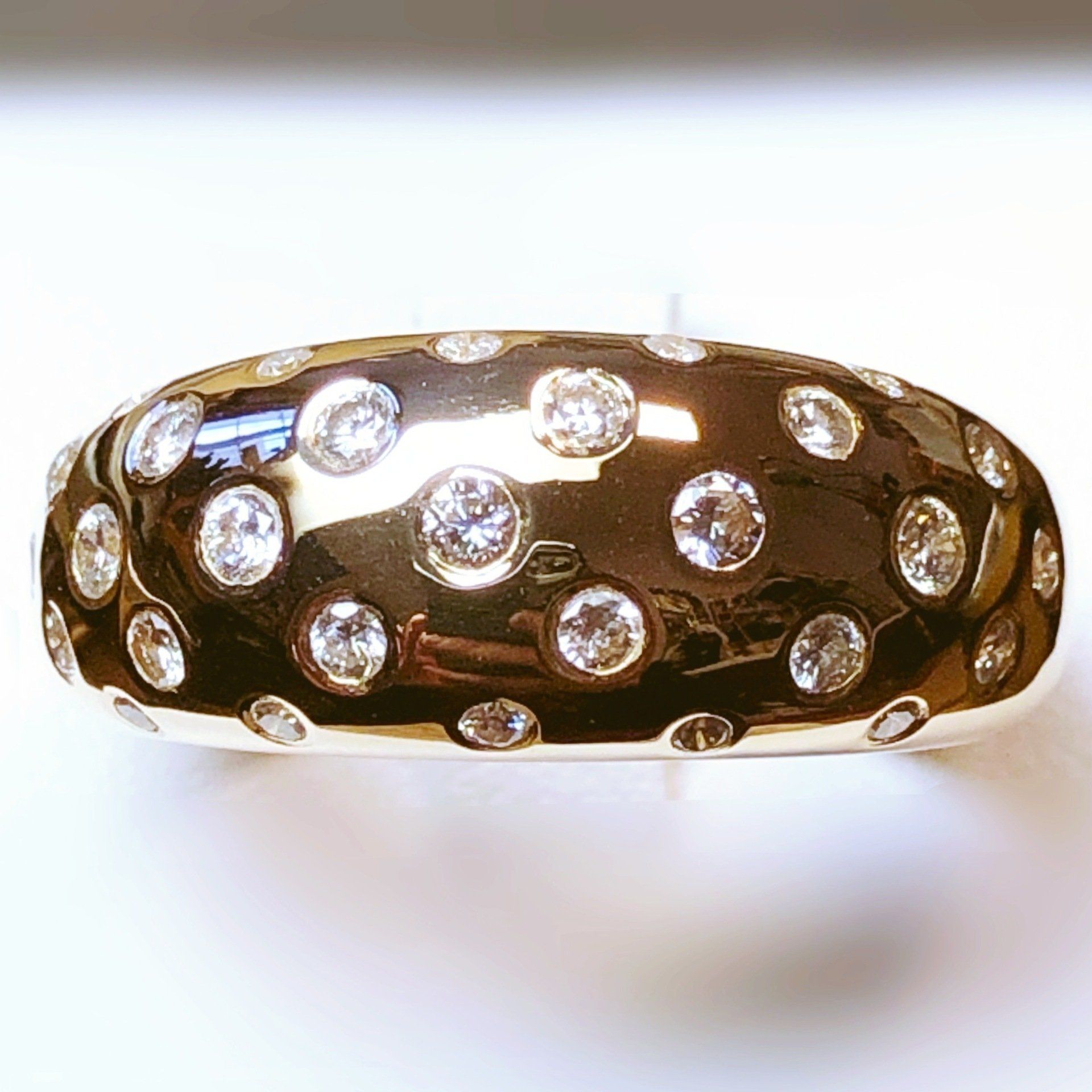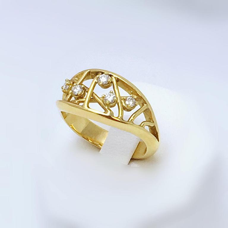 Bague en or jaune 750 millième, sertie de diamants.