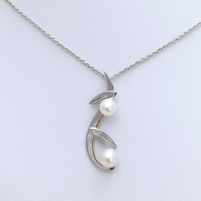 Pendentif feuilles en or blanc 750 millième et perles de culture d'eau douce.