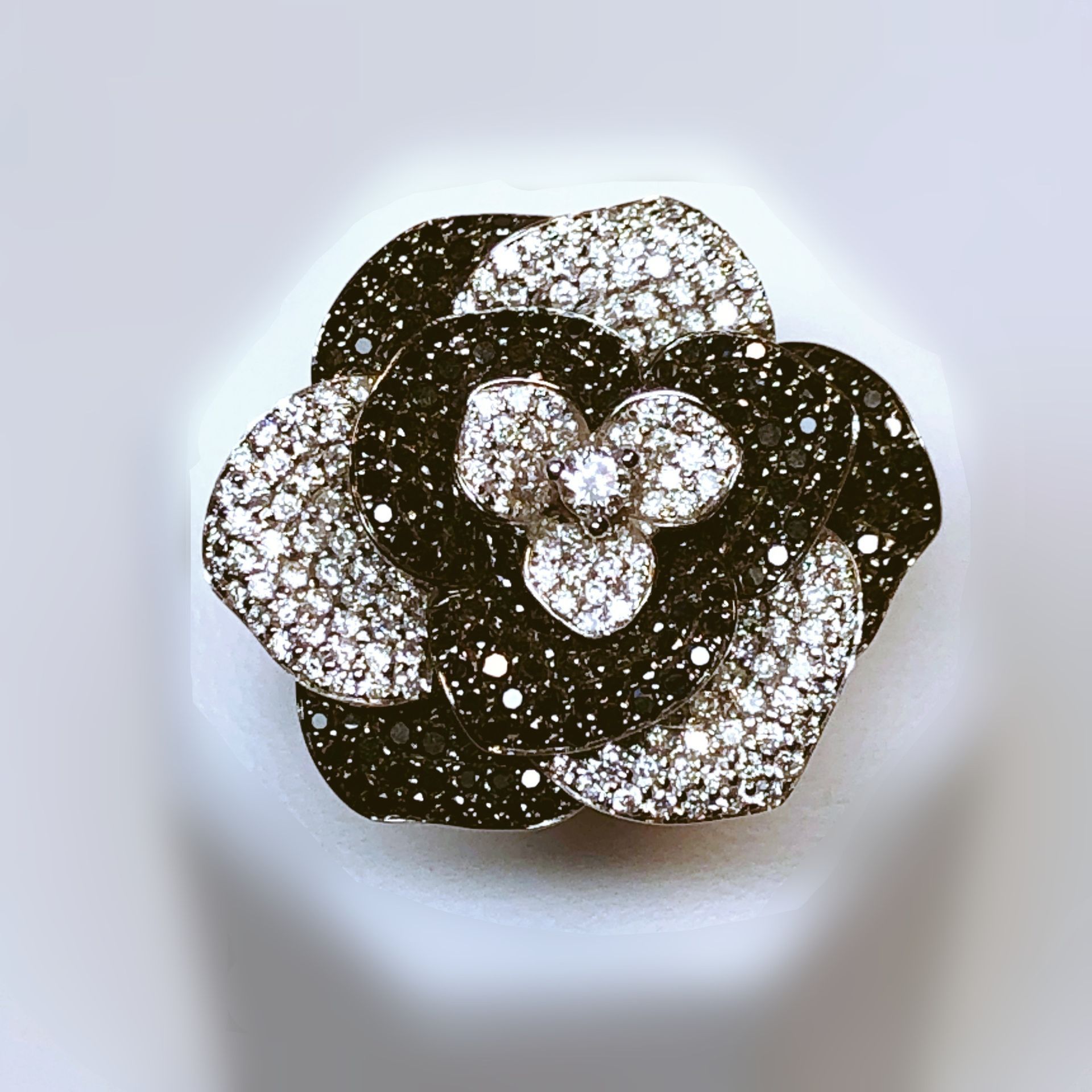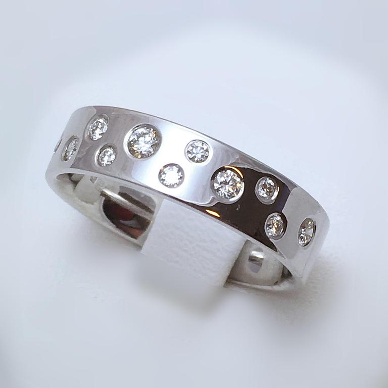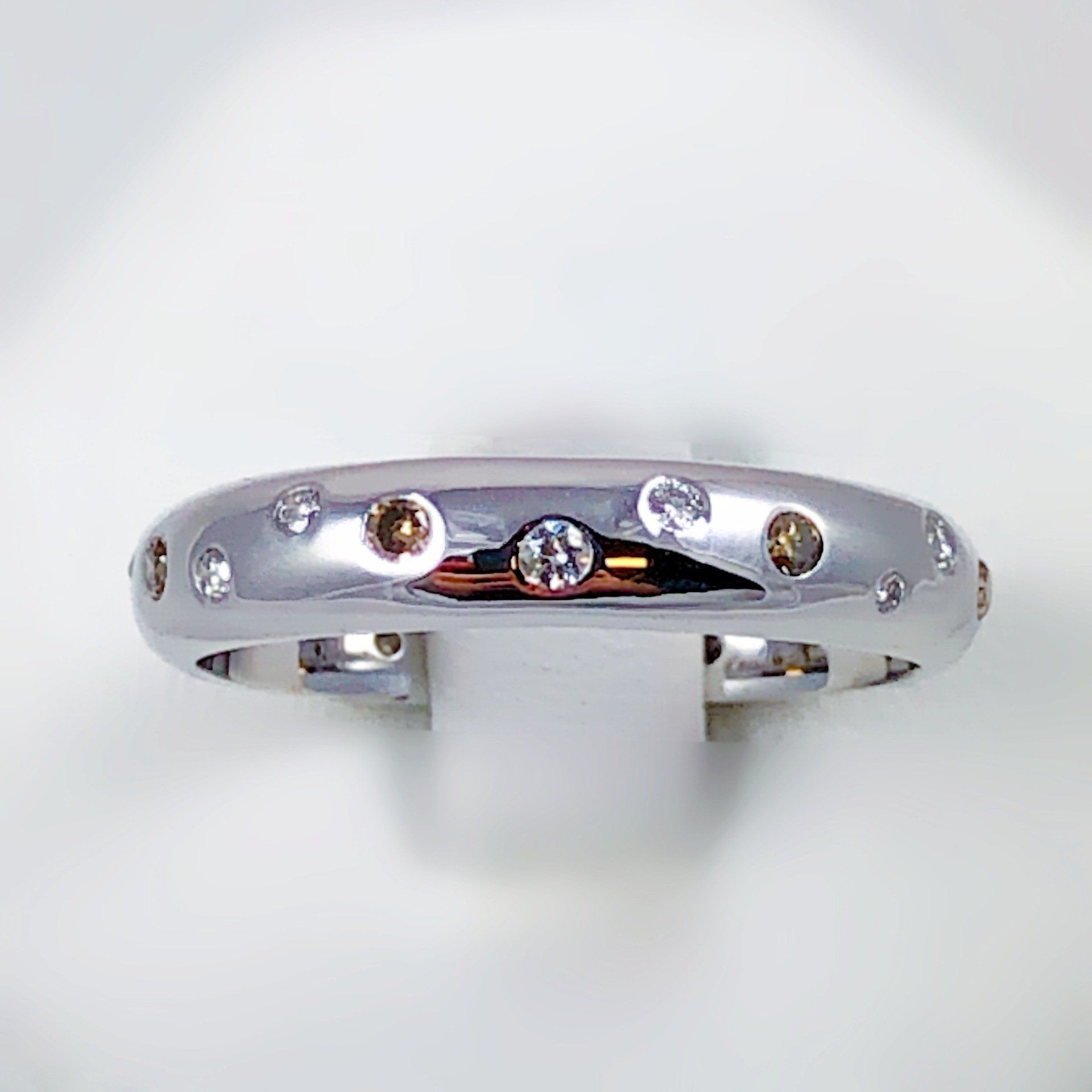 Alliance en or blanc 750 millième, sertie de diamants blancs et bruns.