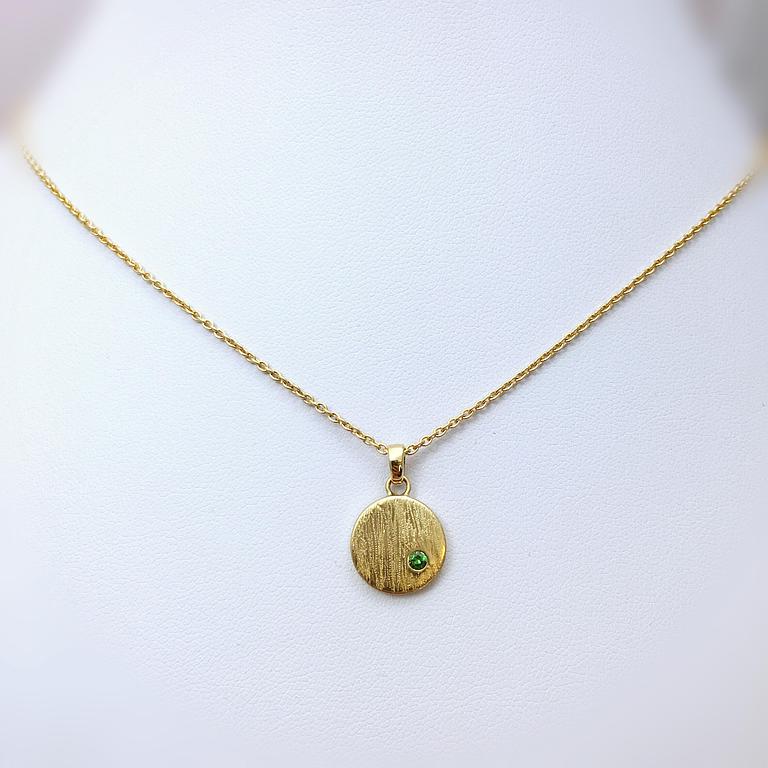 Pendentif médaille en or jaune 750 millième, serti d'une émeraude.