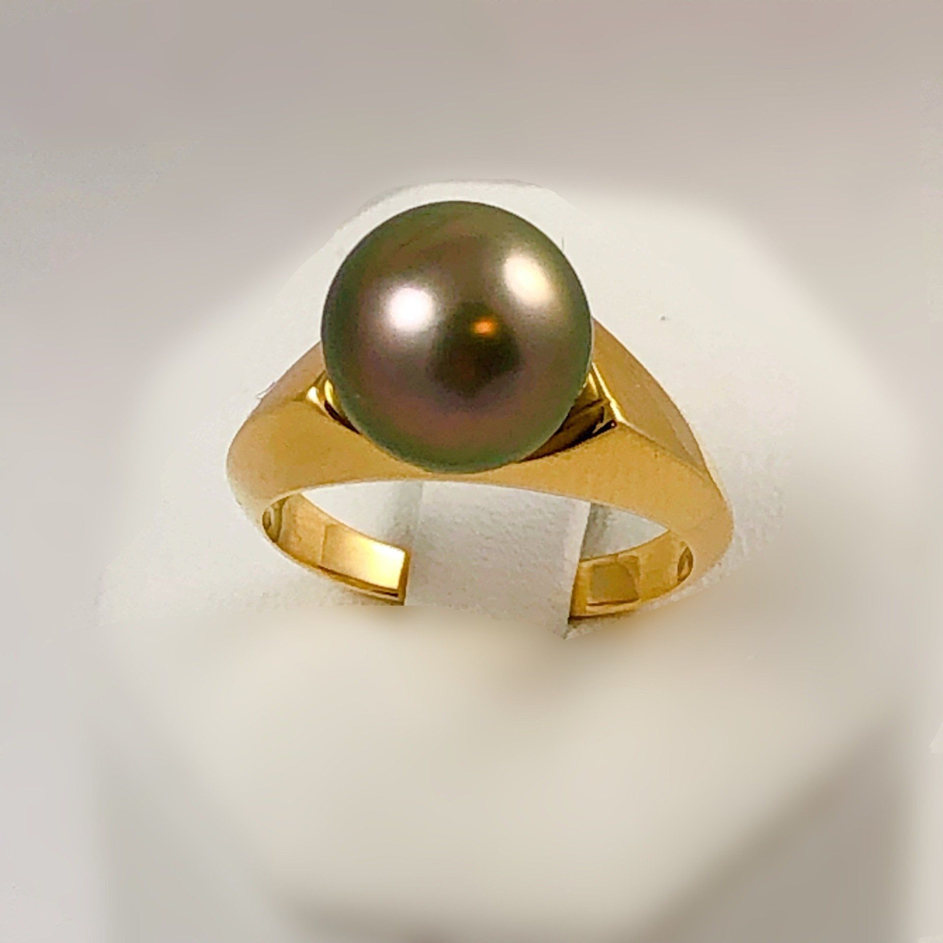 Bague en or jaune 750 millième et perle de Tahiti.