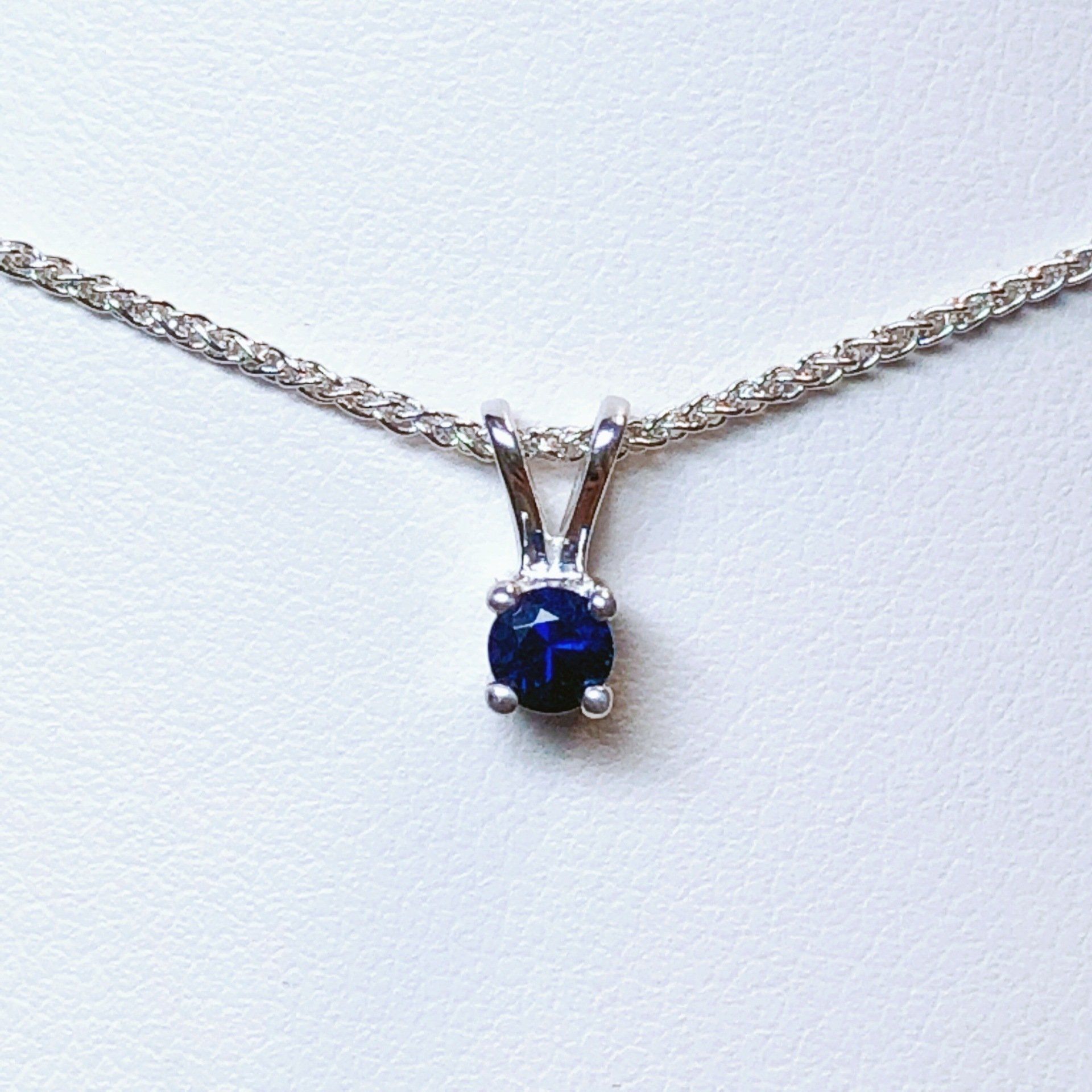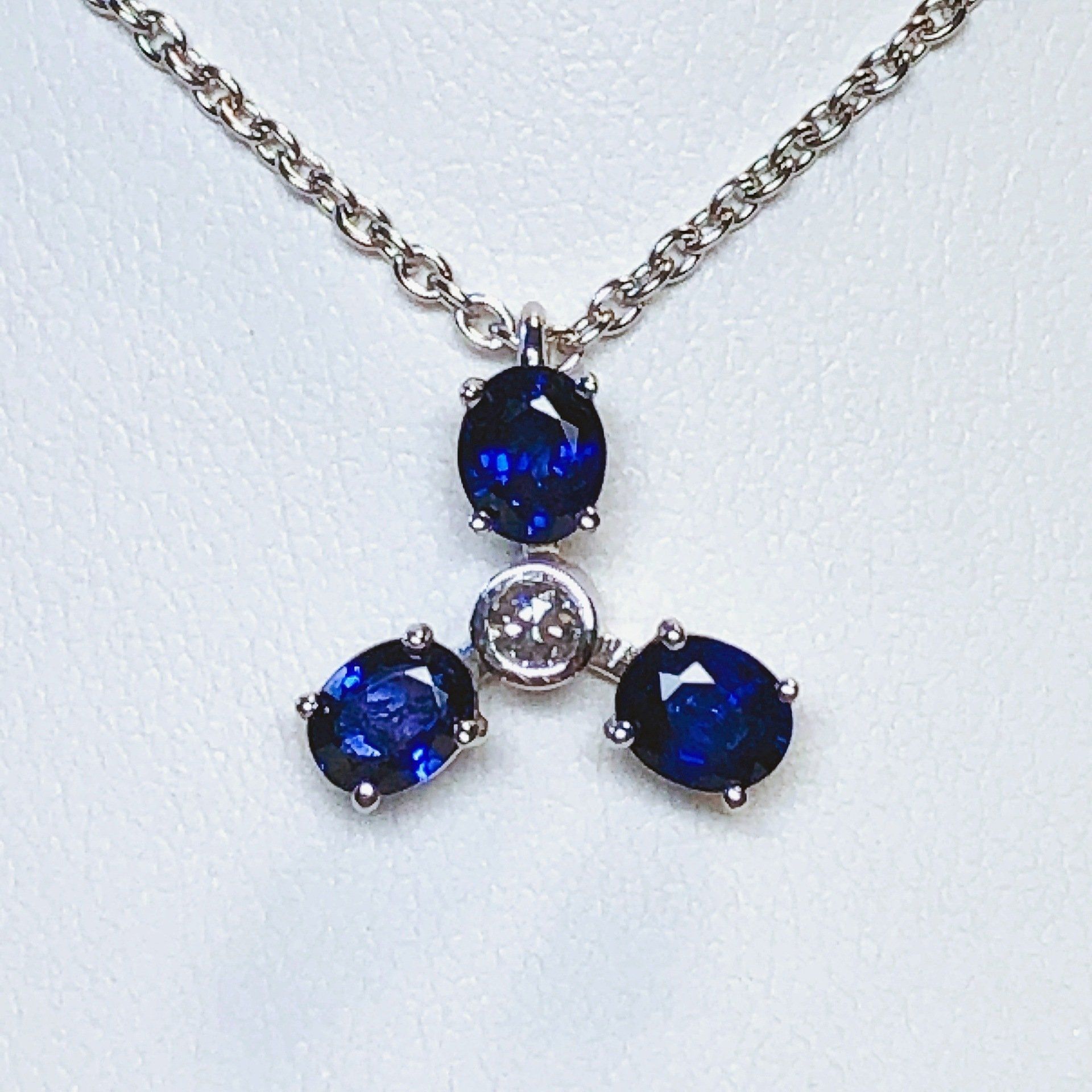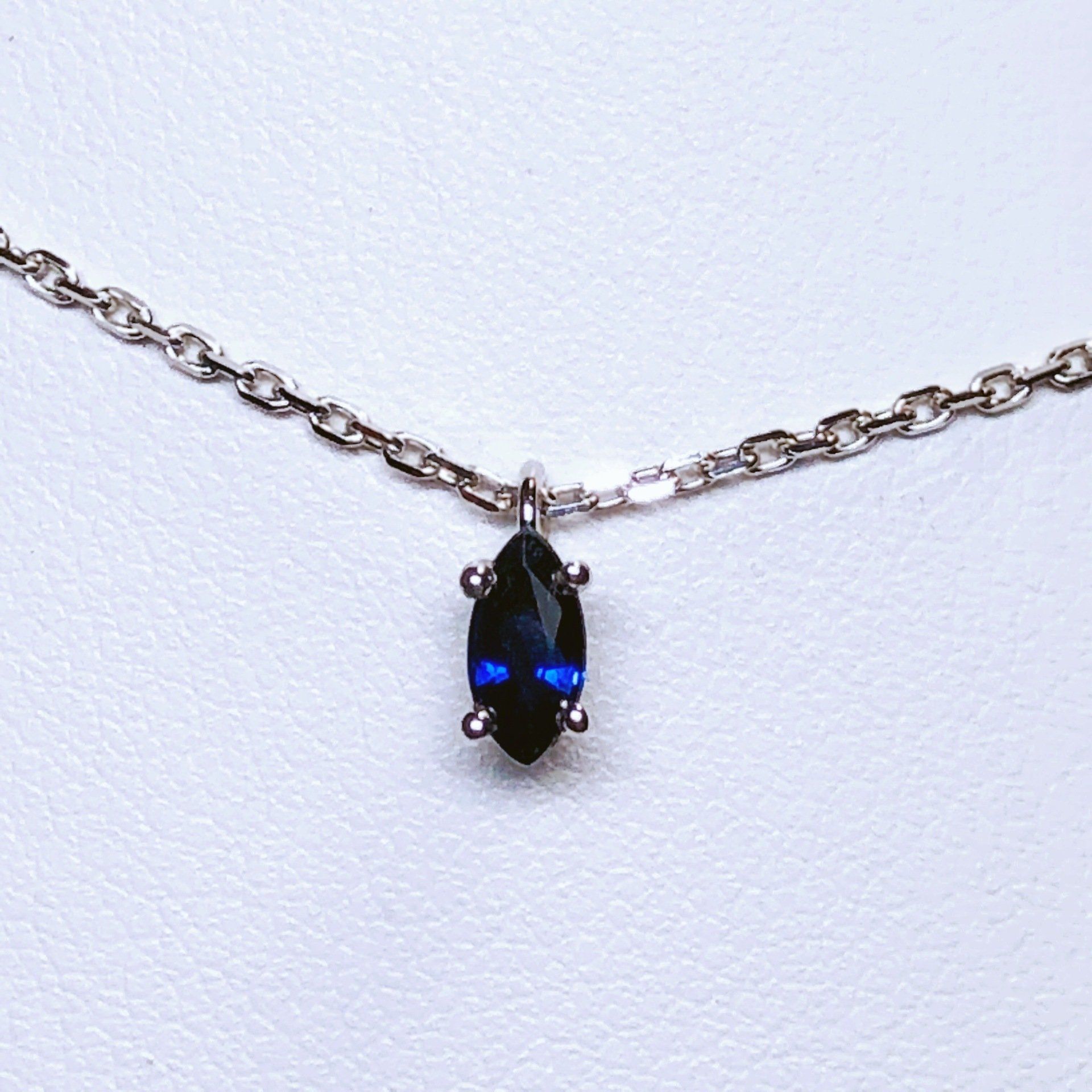 Collier en or blanc 750 millième serti d'un saphir.