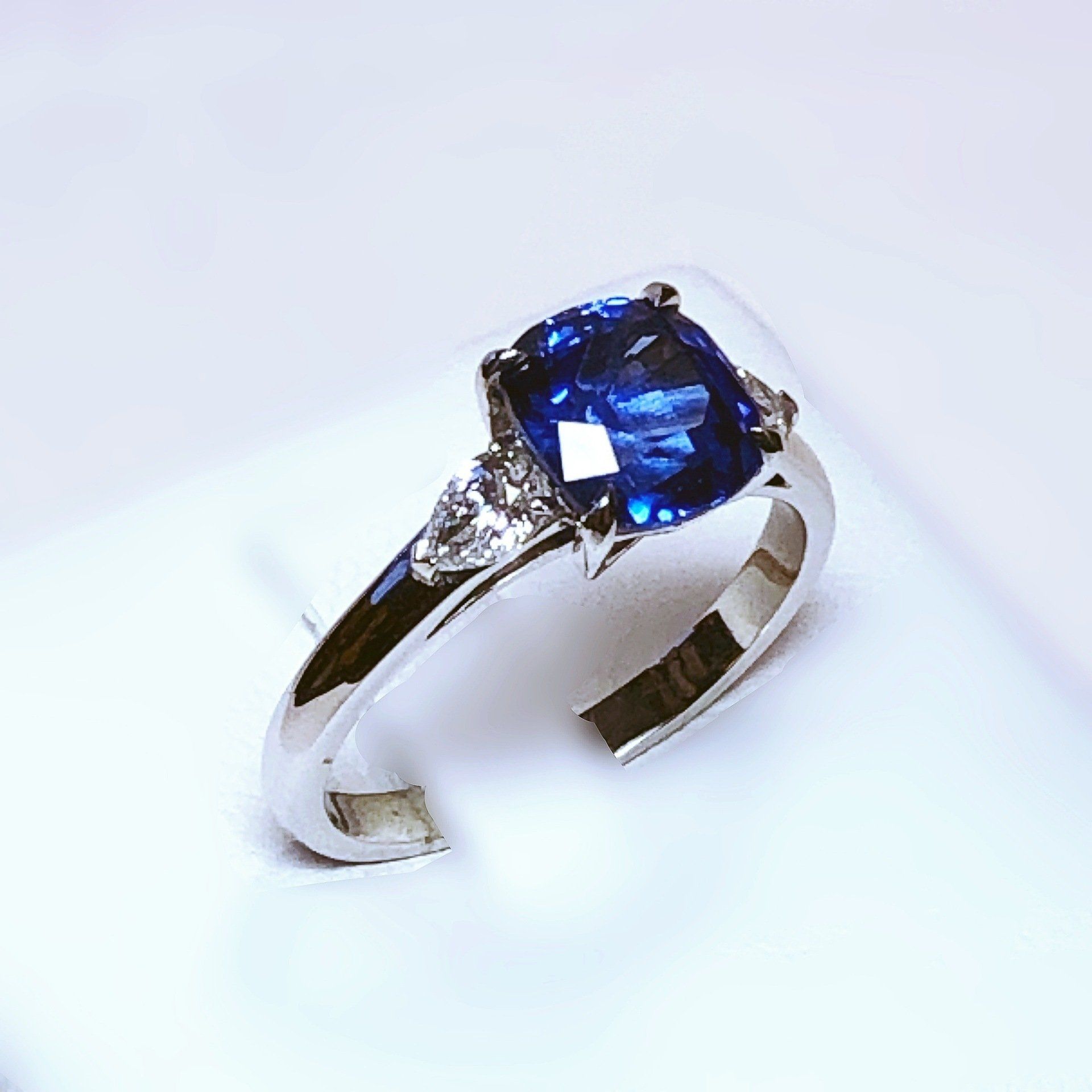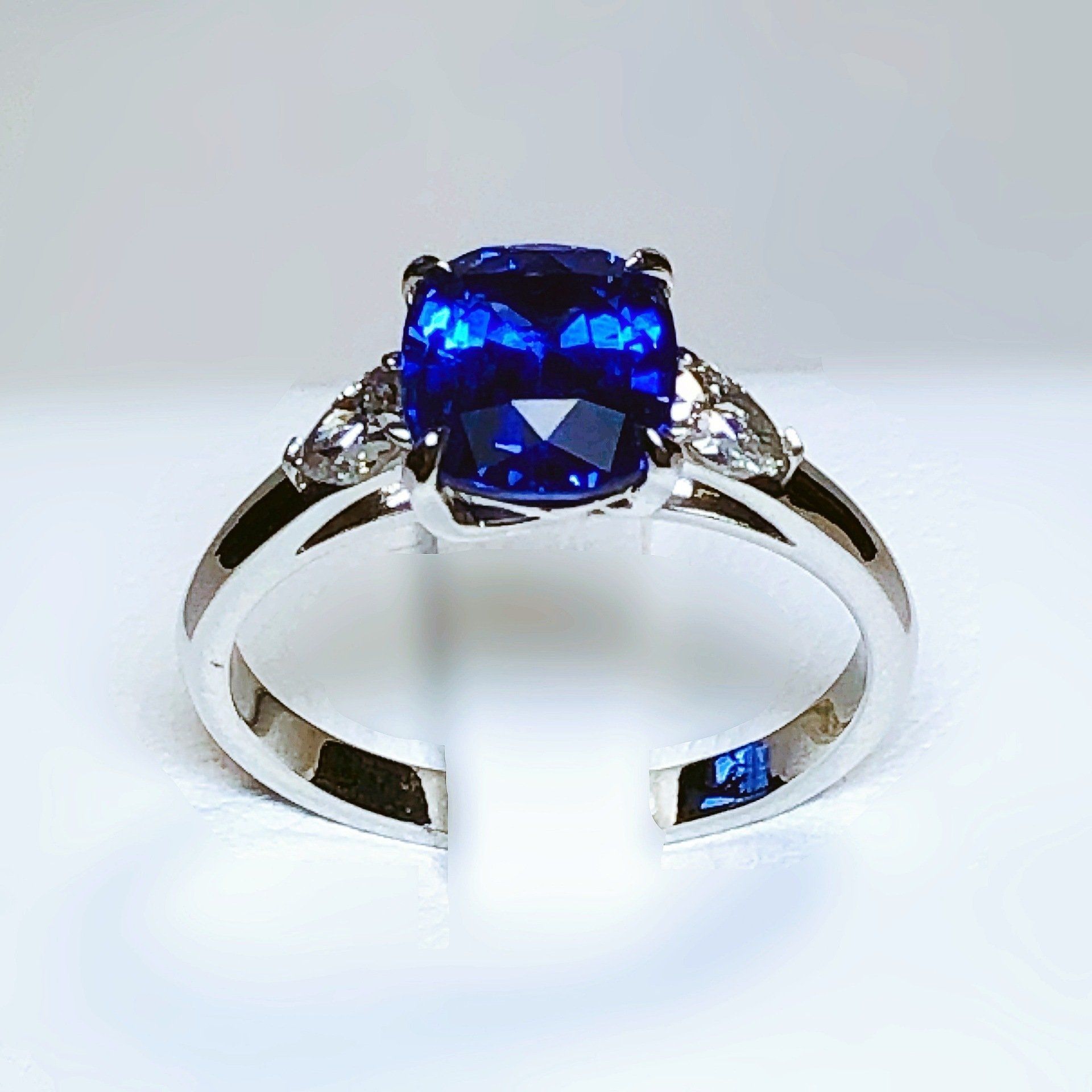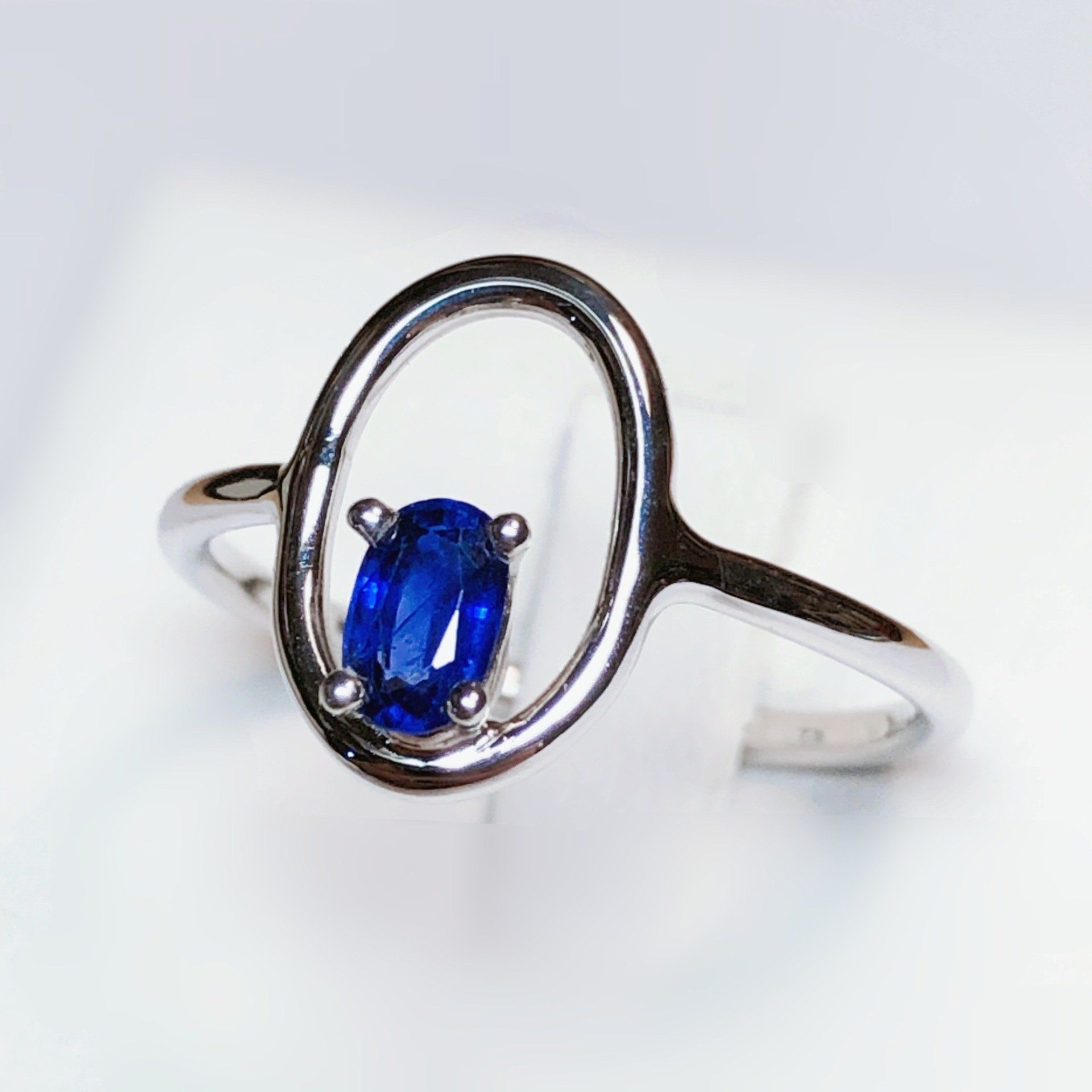 Bague en or blanc 750 millième, sertie d'un saphir.