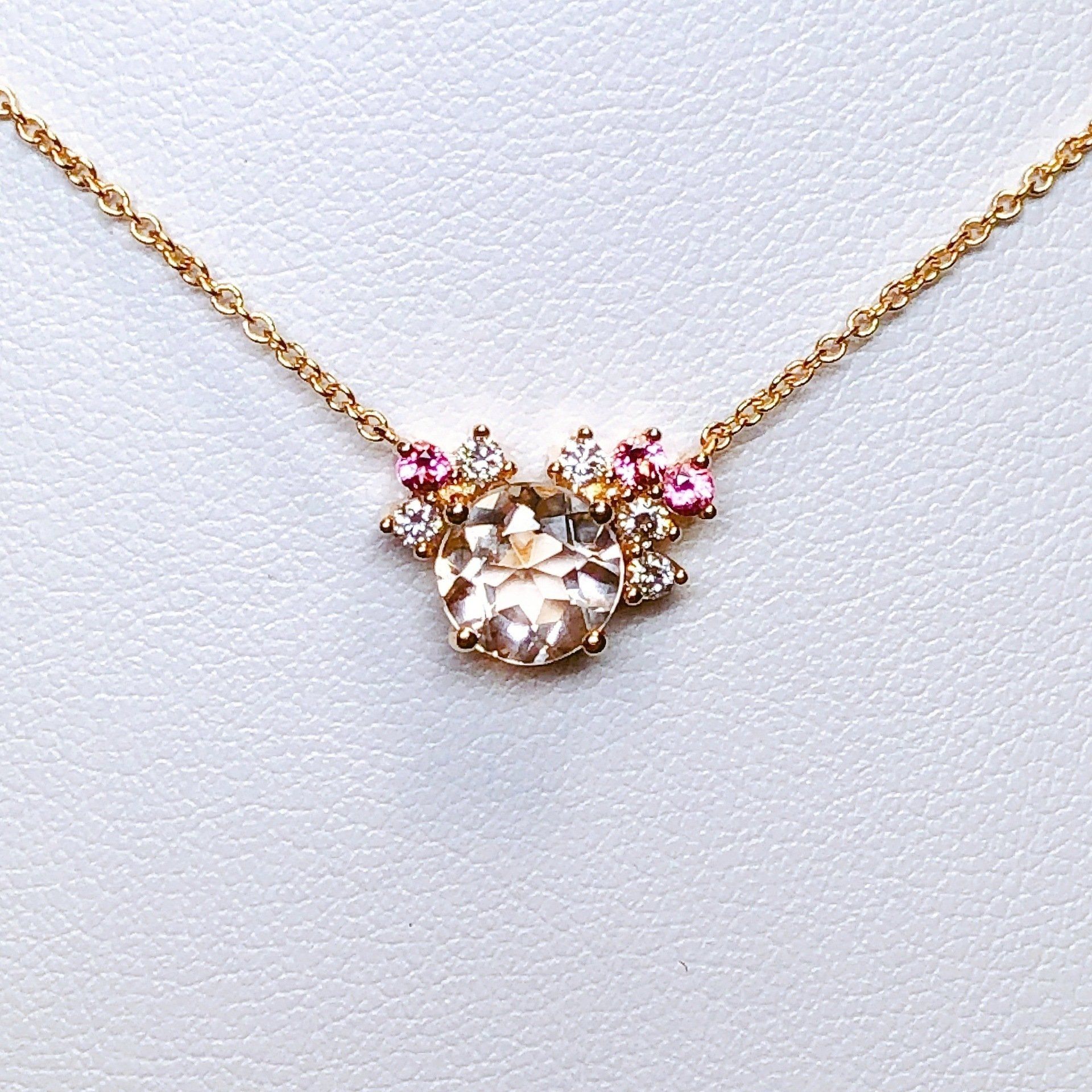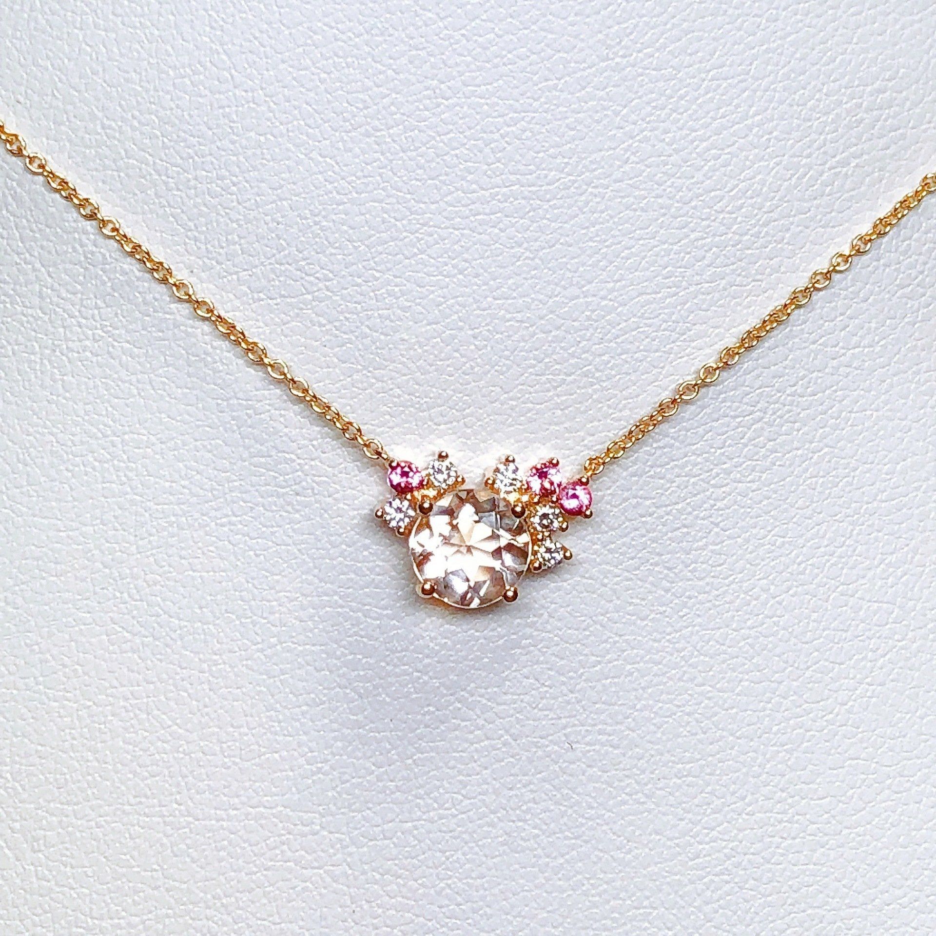 Collier en or rose 750 millième, serti d'une morganite, de tourmalines et de diamants.