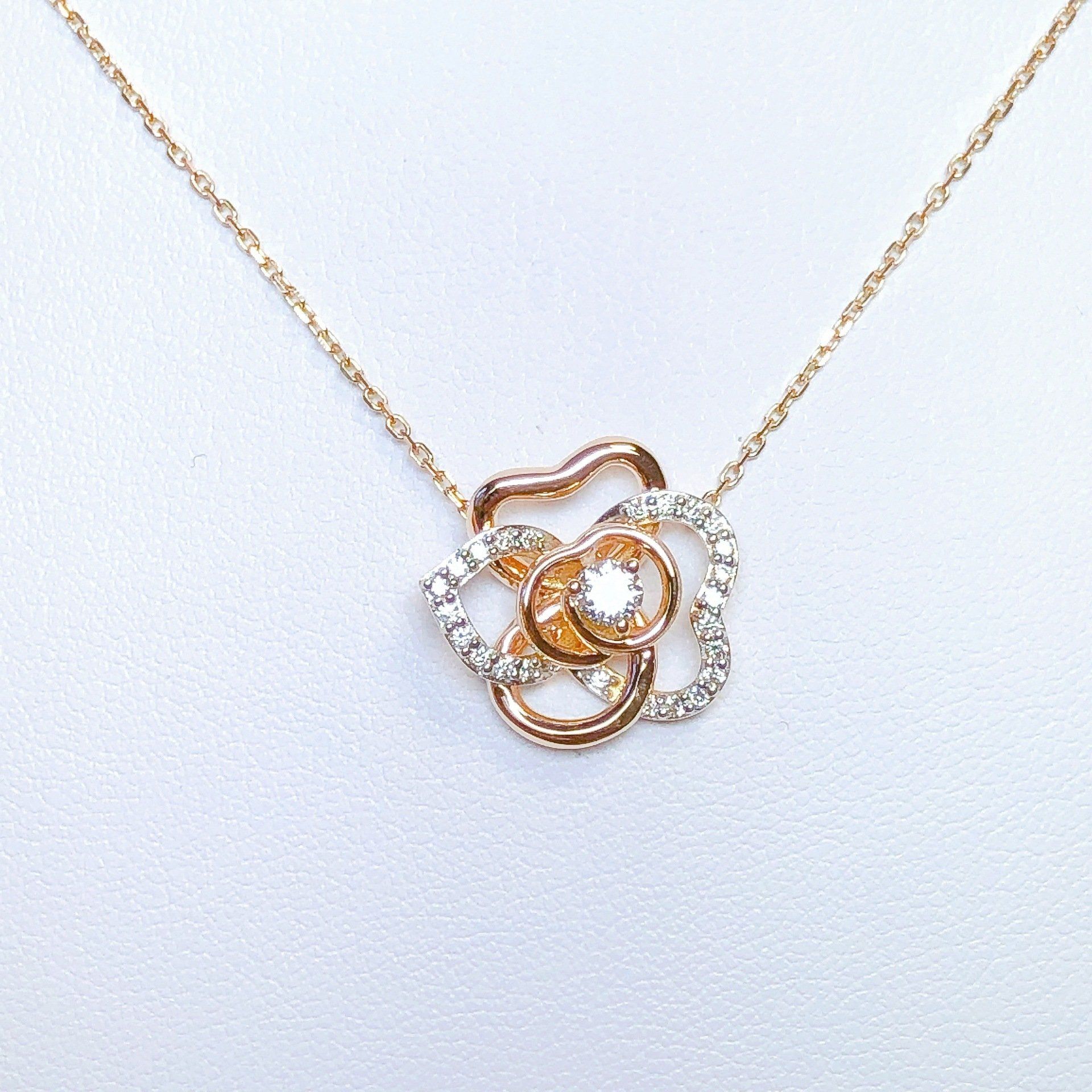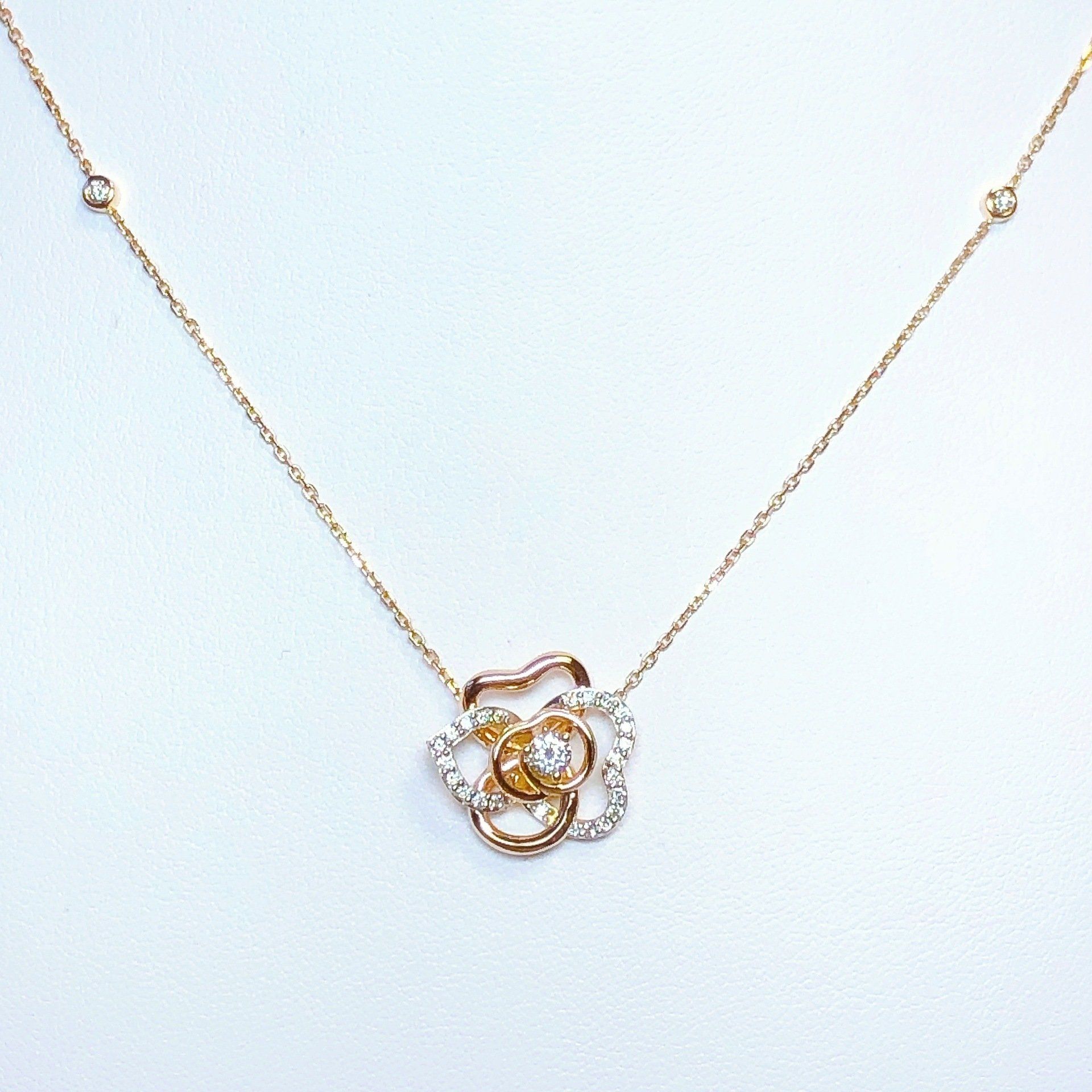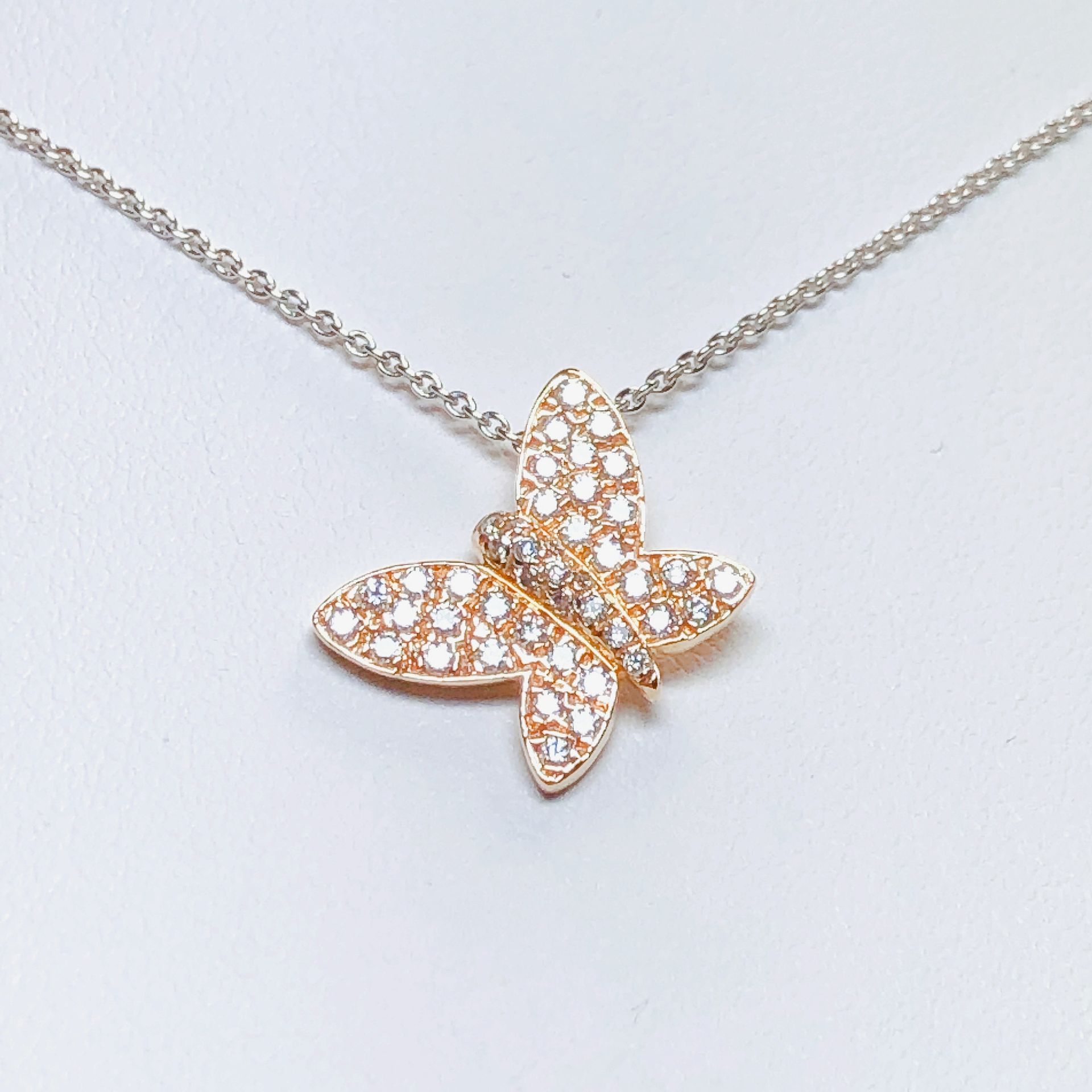 Collier en or rose 750 millième, serti de diamants.