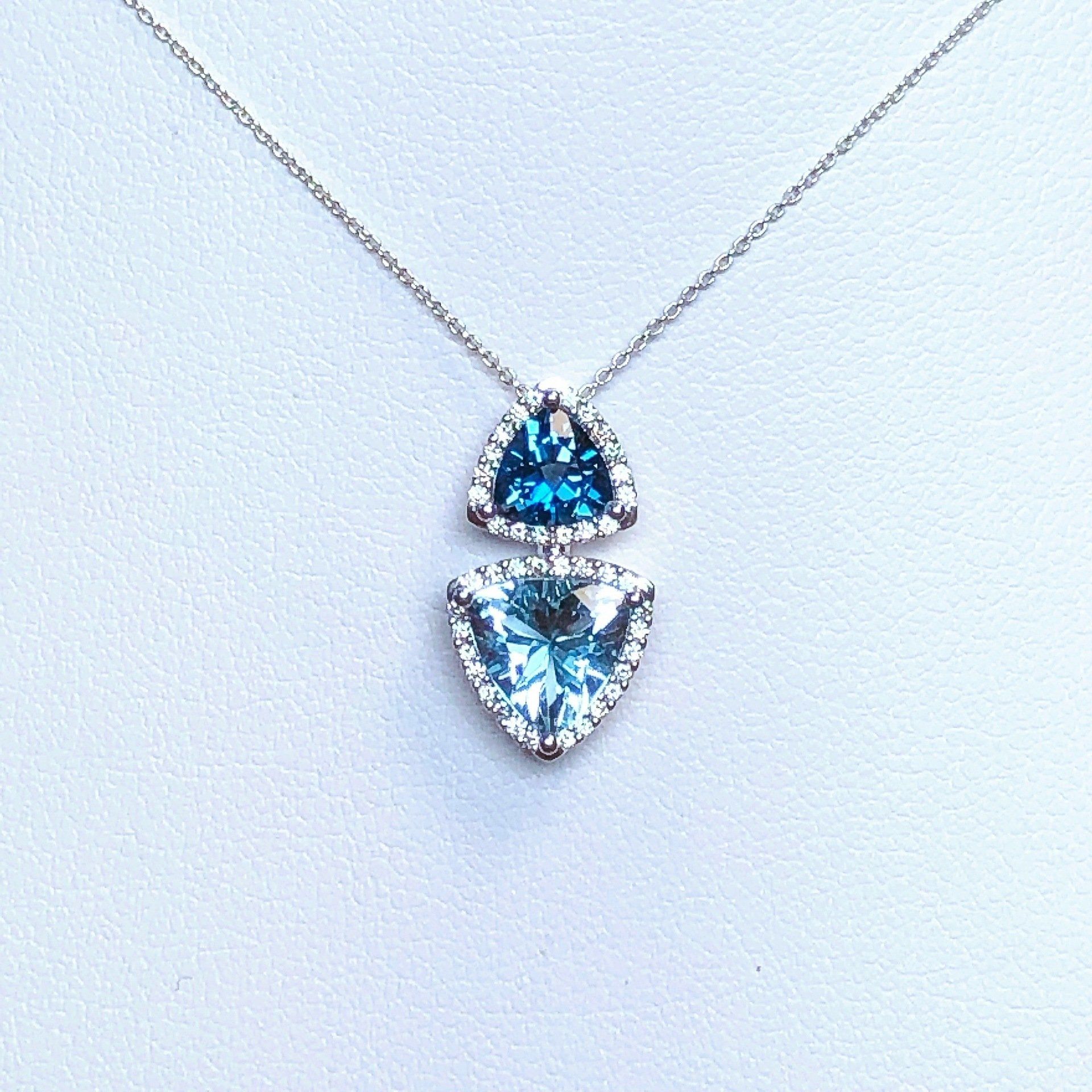 Collier en or blanc 750 millième, serti de diamants et de topazes.