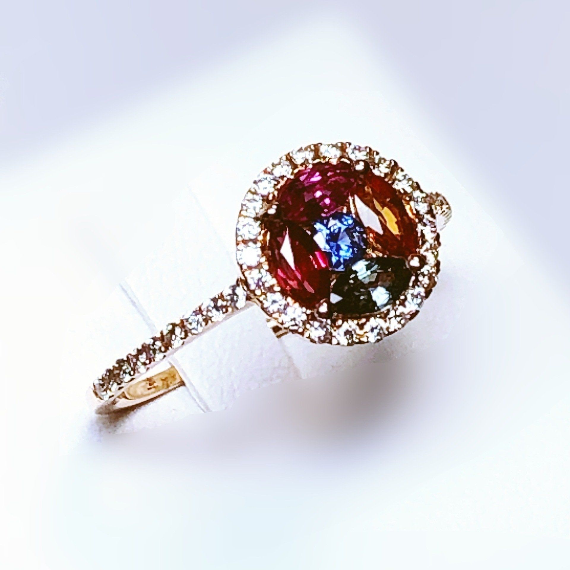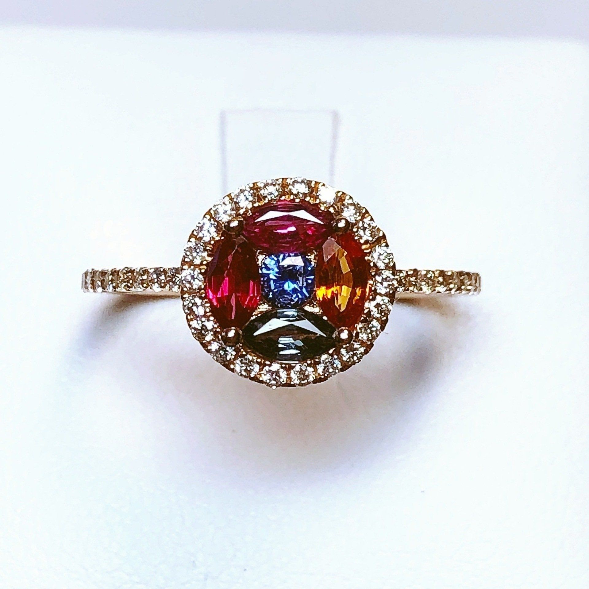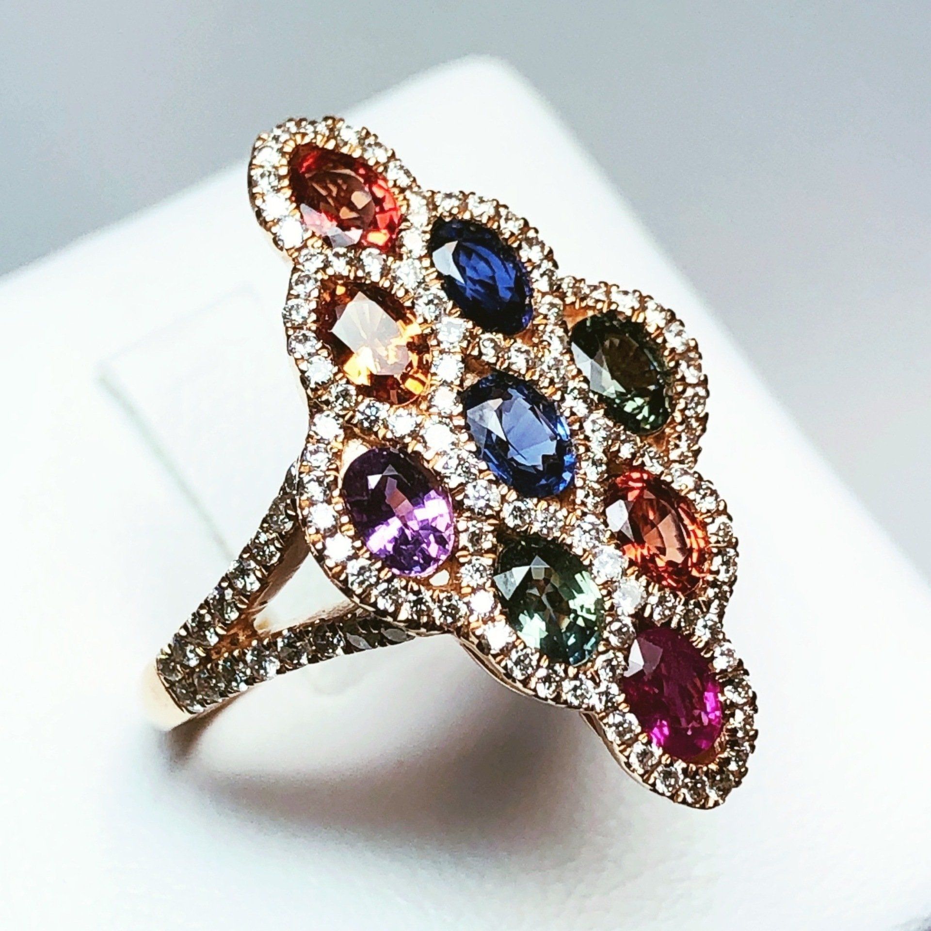 Bague en or rose 750 millième, sertie de saphirs et de diamants.