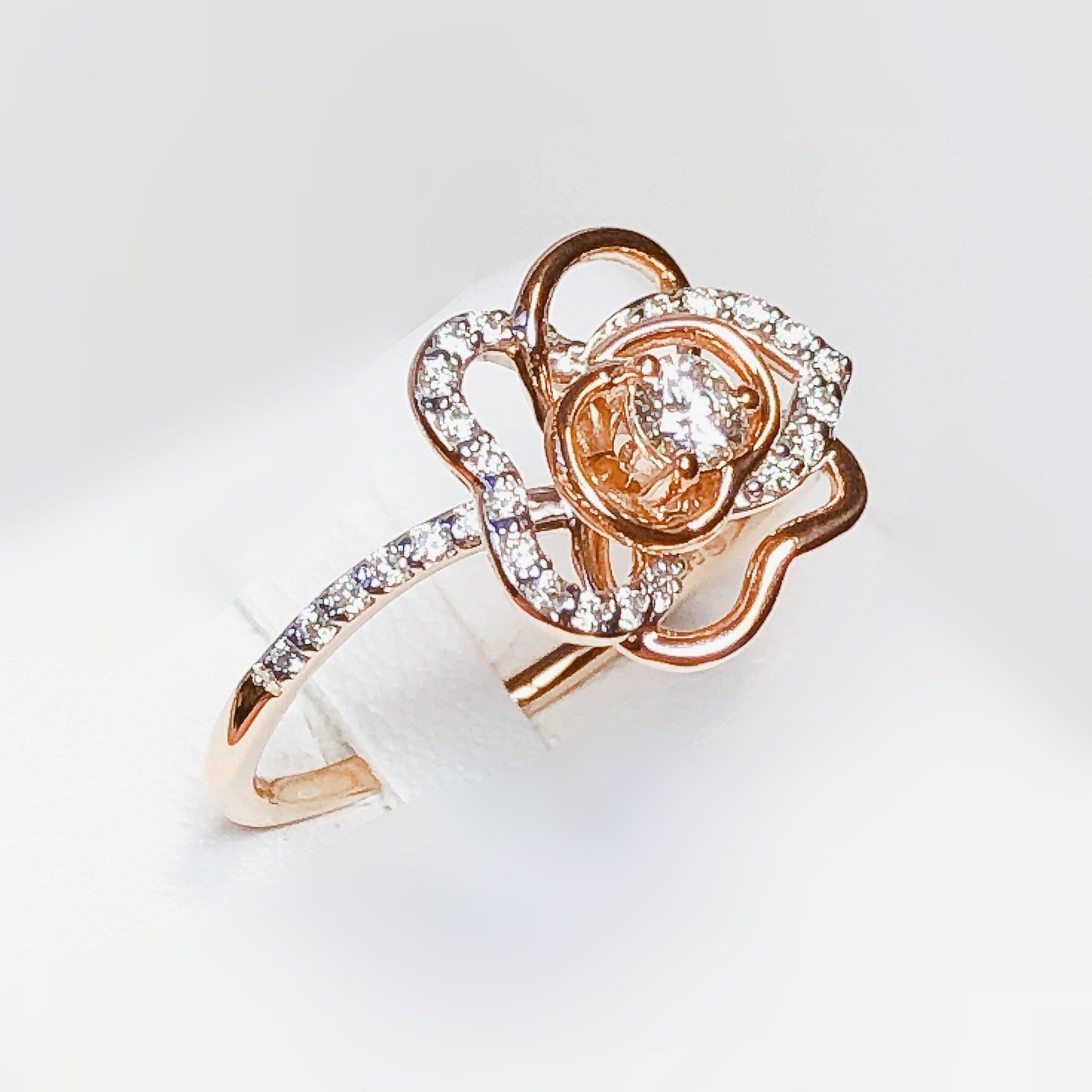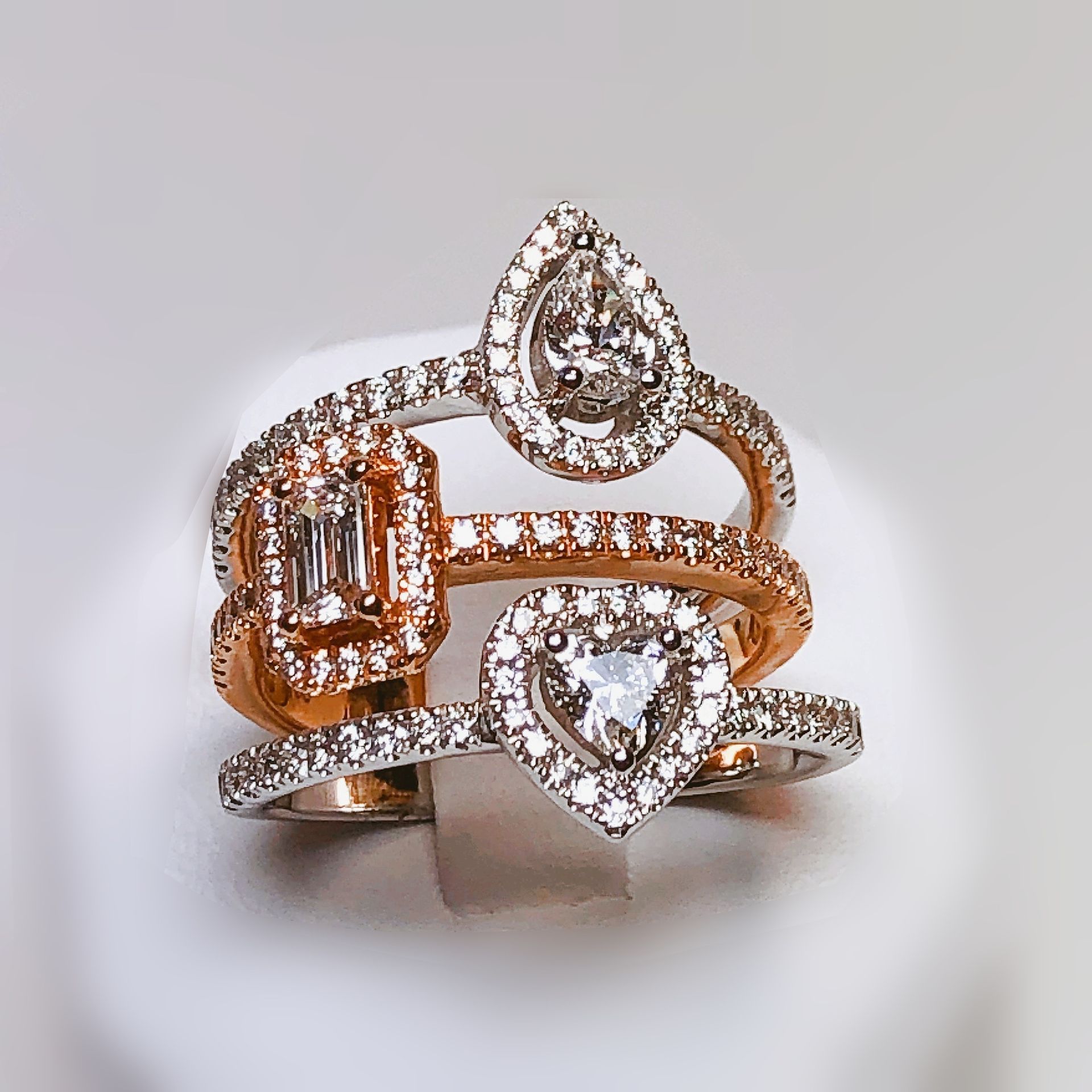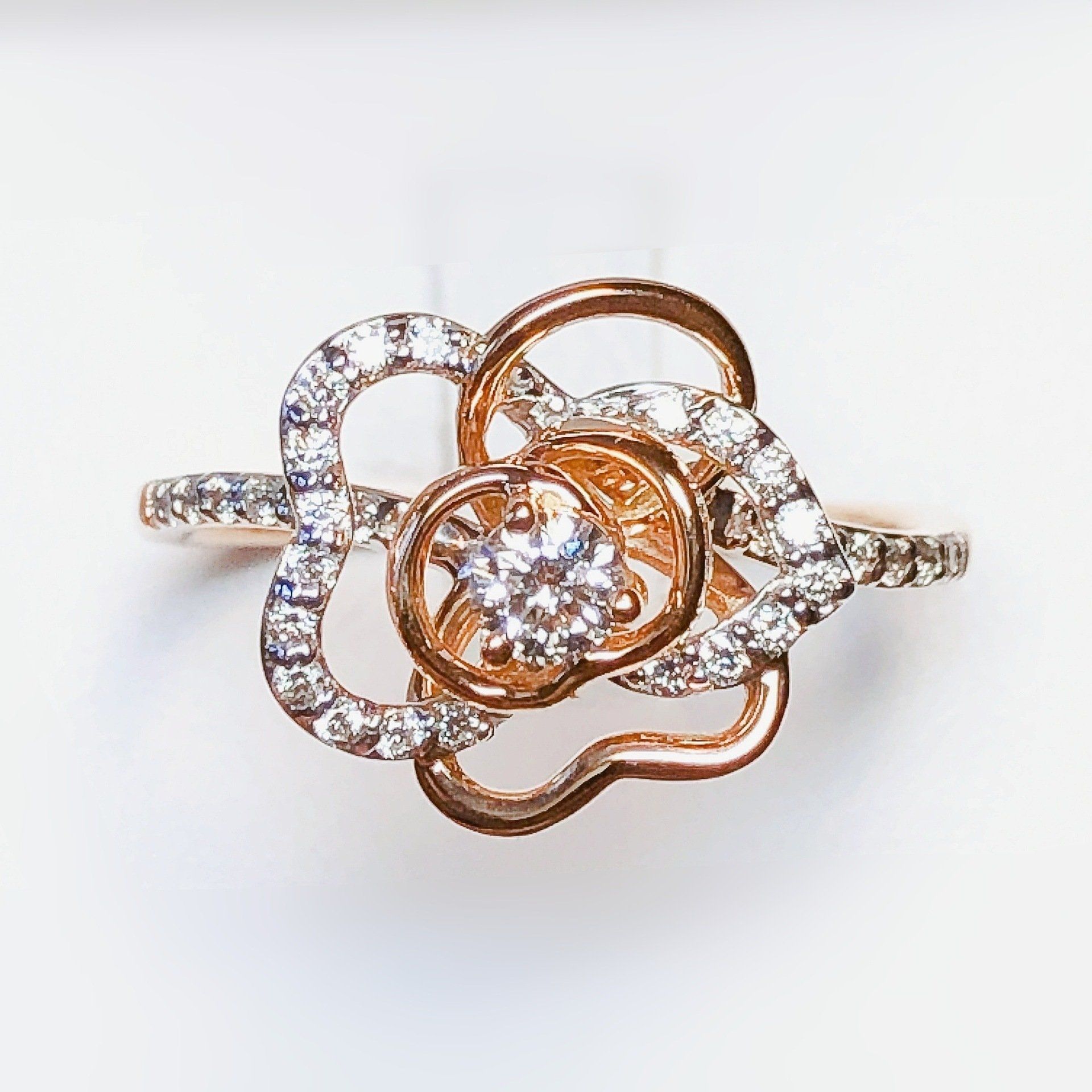 Bague en or rose 750 millième, sertie de diamants.