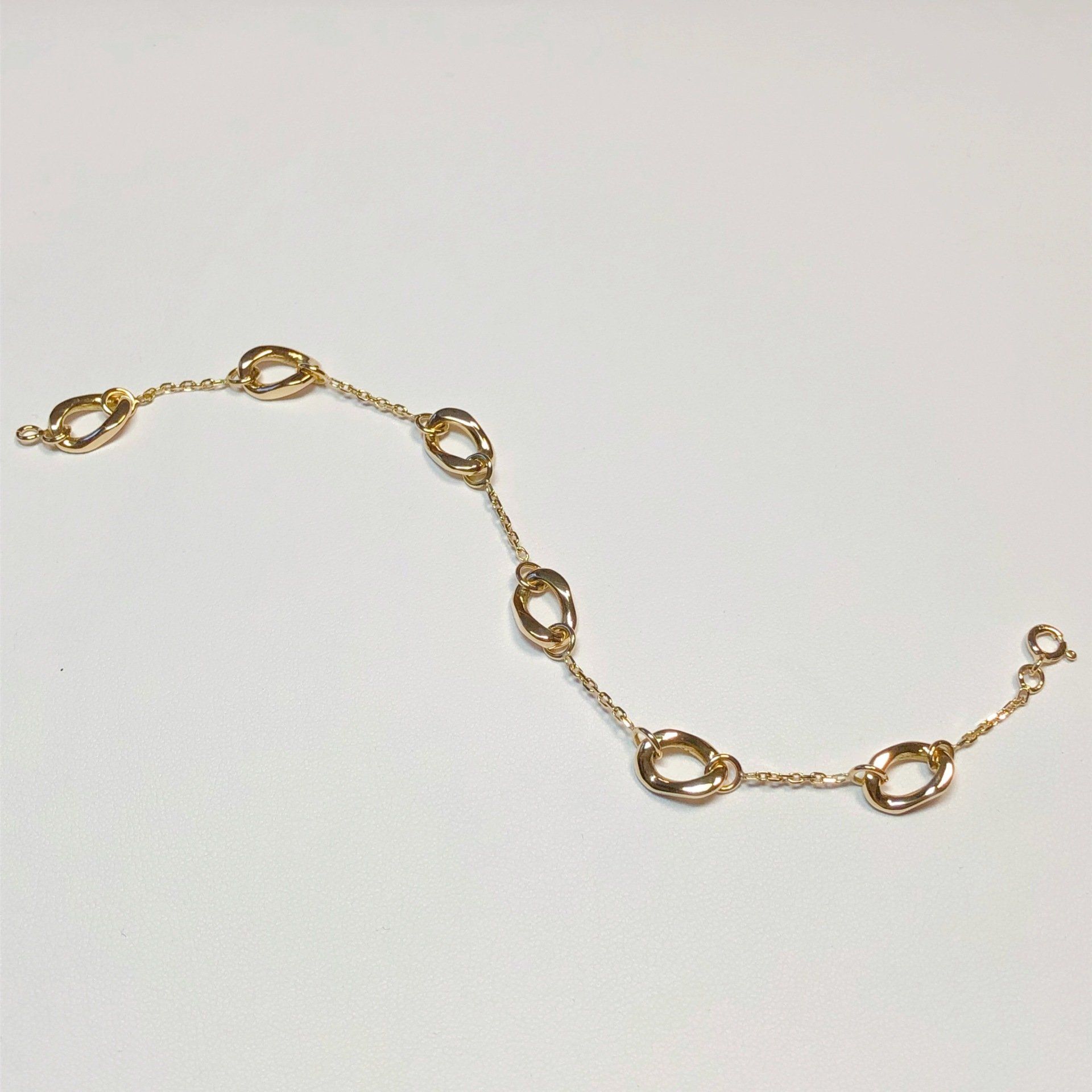 Bracelet anneaux entrelacés, en or jaune 750 millième.