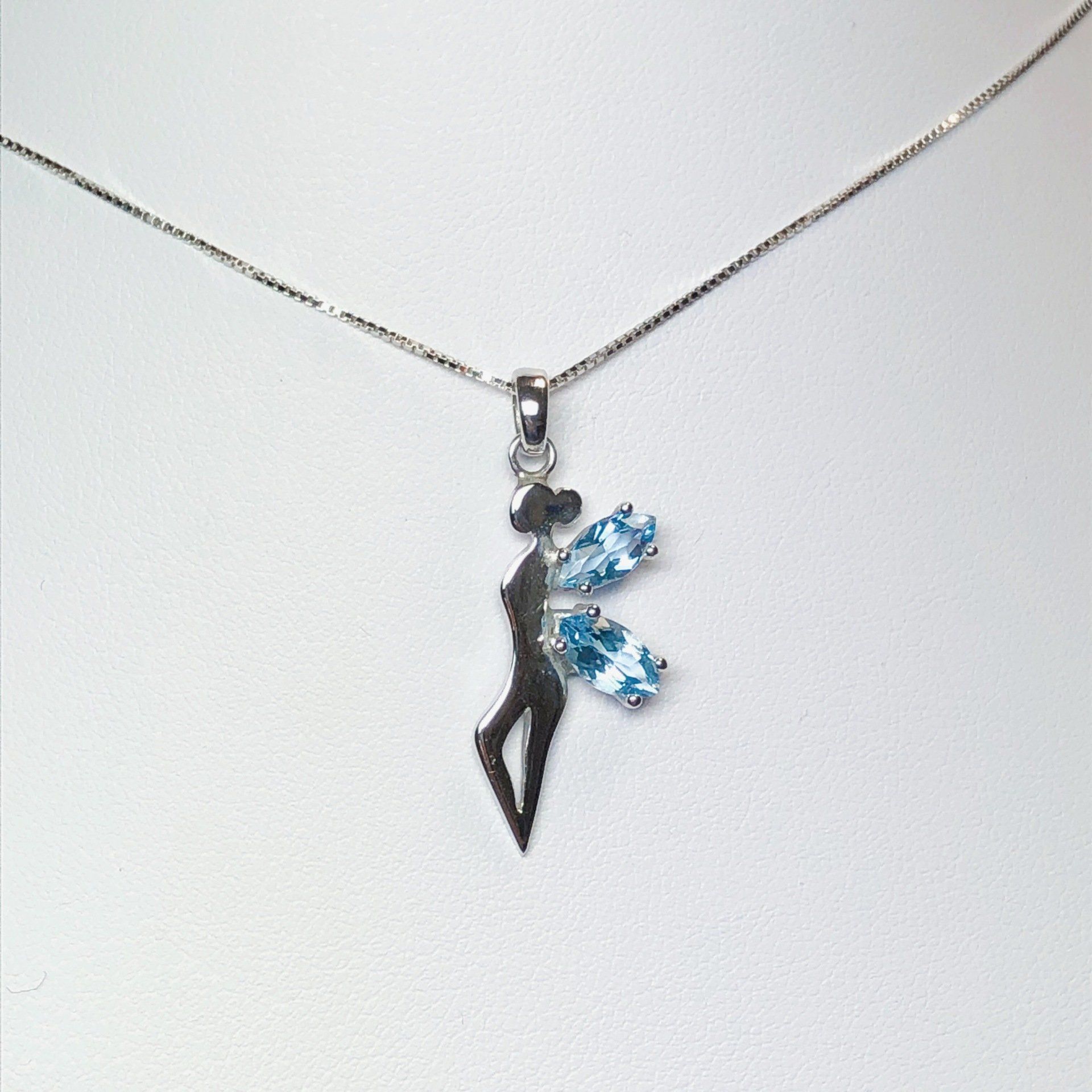 Pendentif fée en or blanc 750 millième, serti de deux topazes.