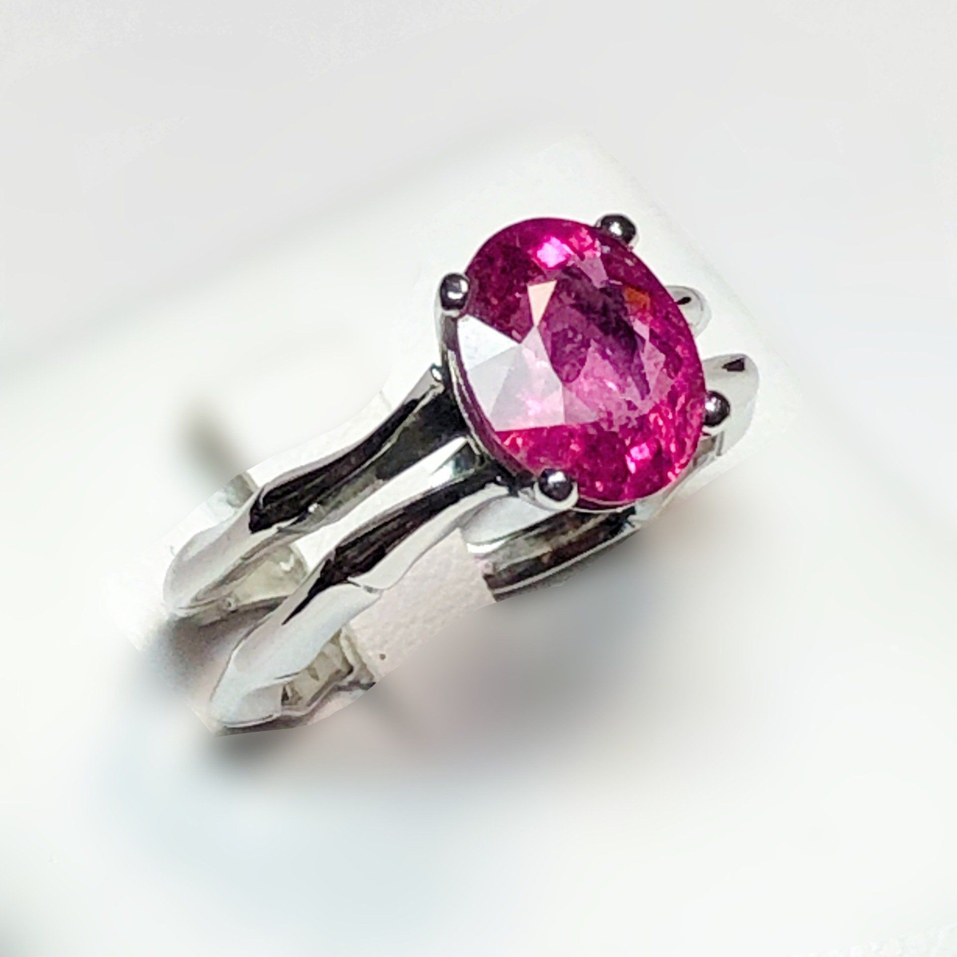 Bague en or blanc 750 millième, sertie d'une rubellite.