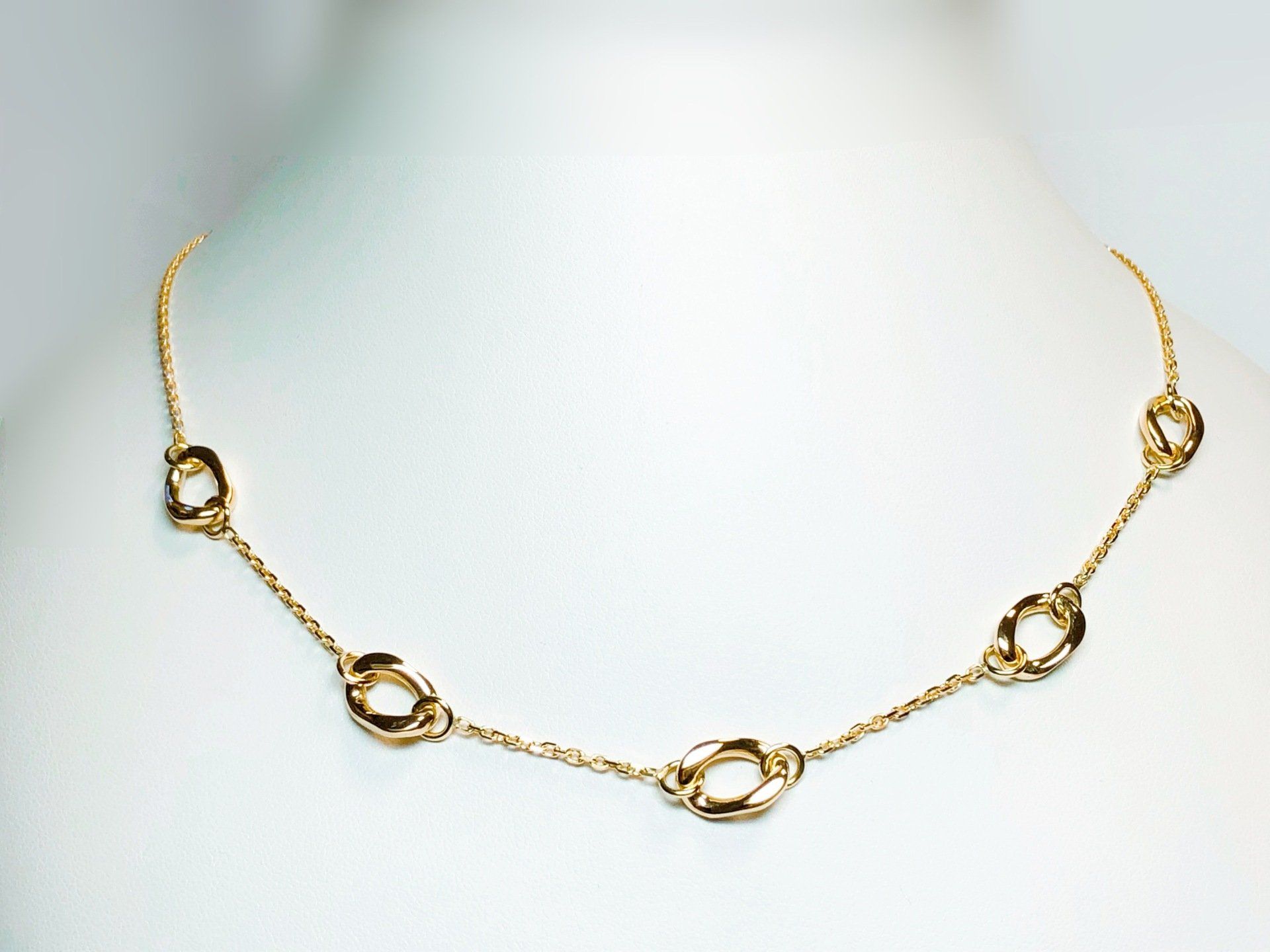 Collier anneaux entrelacés en or jaune 750 millième.