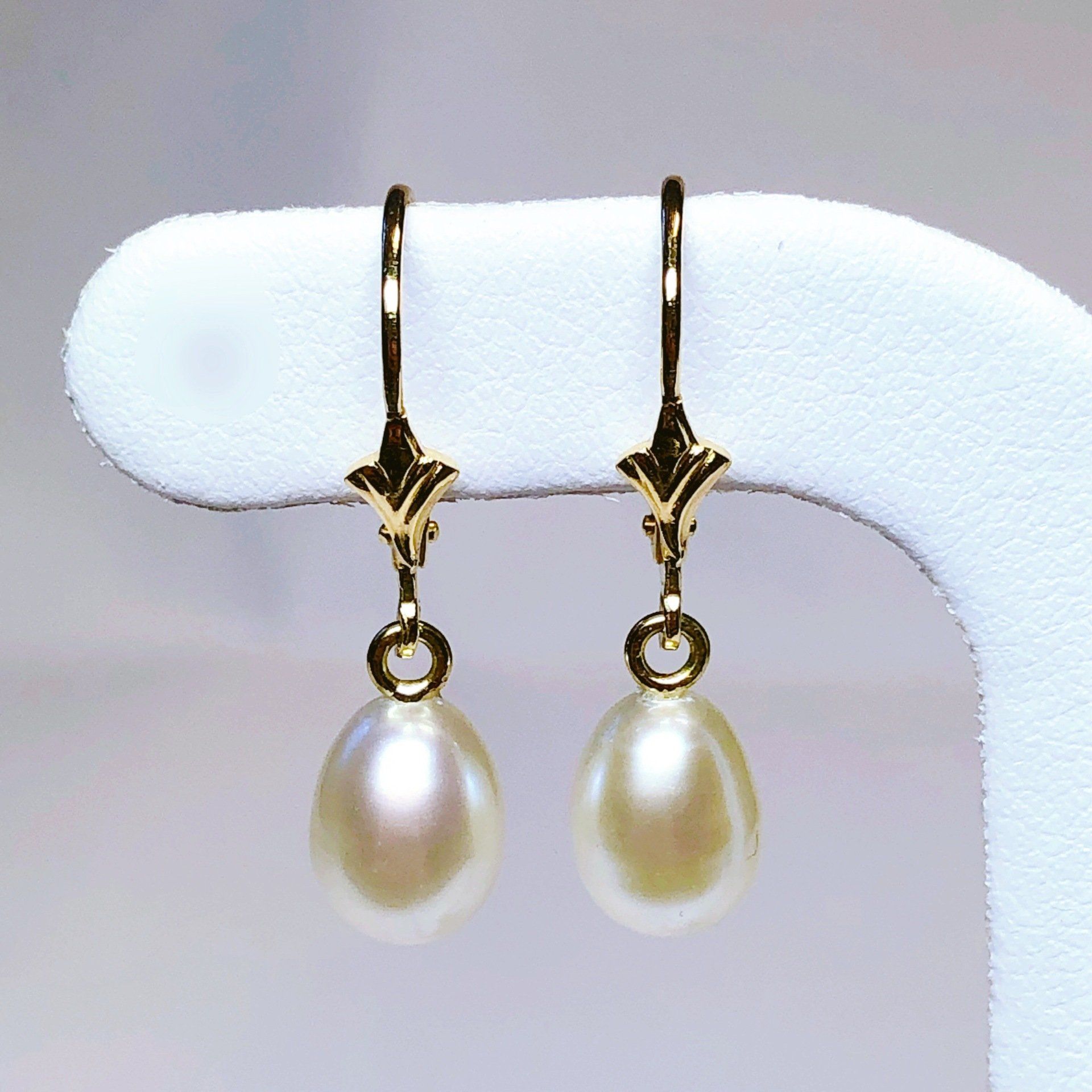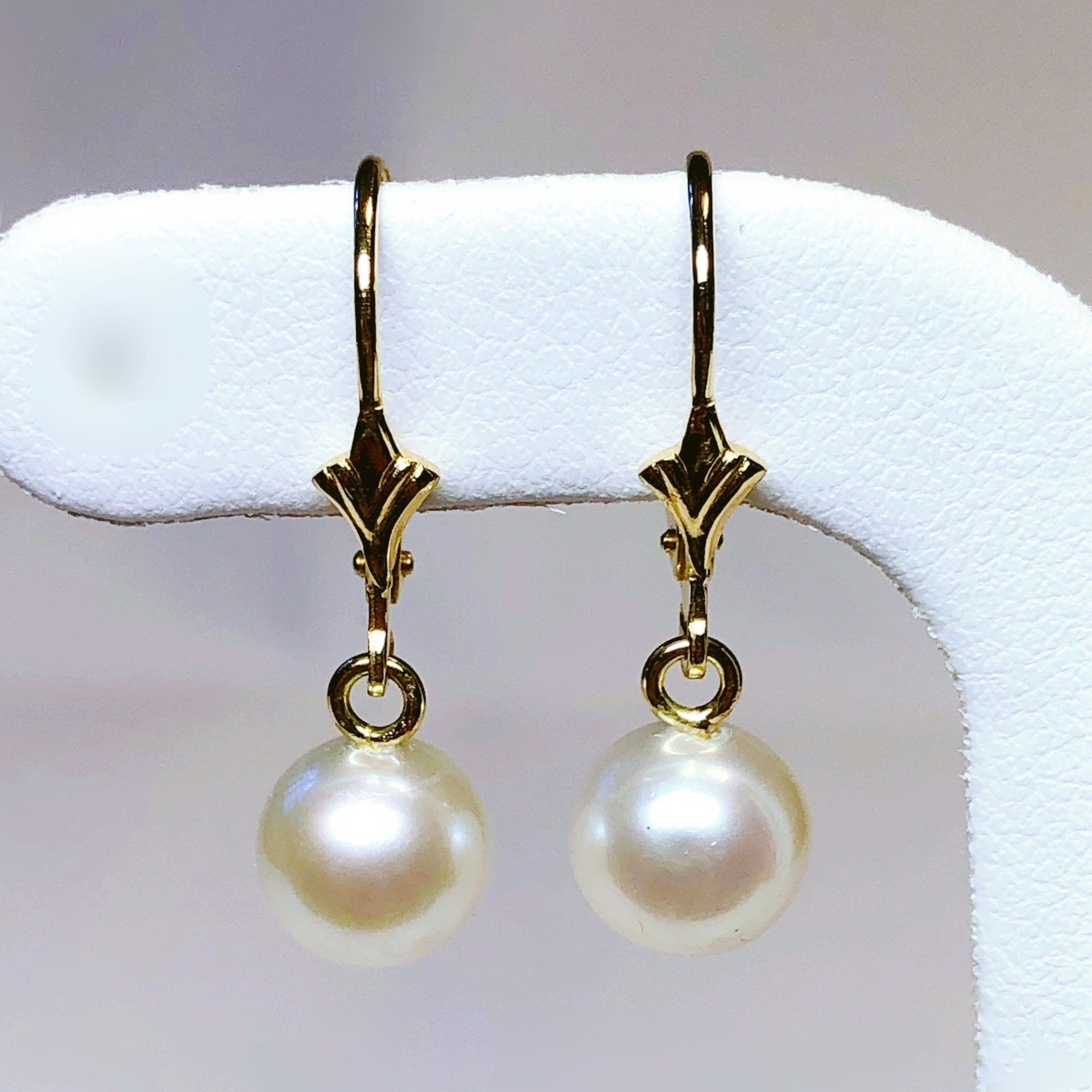 Boucles d'oreilles dormeuses en or jaune 750 millième et perles de culture.