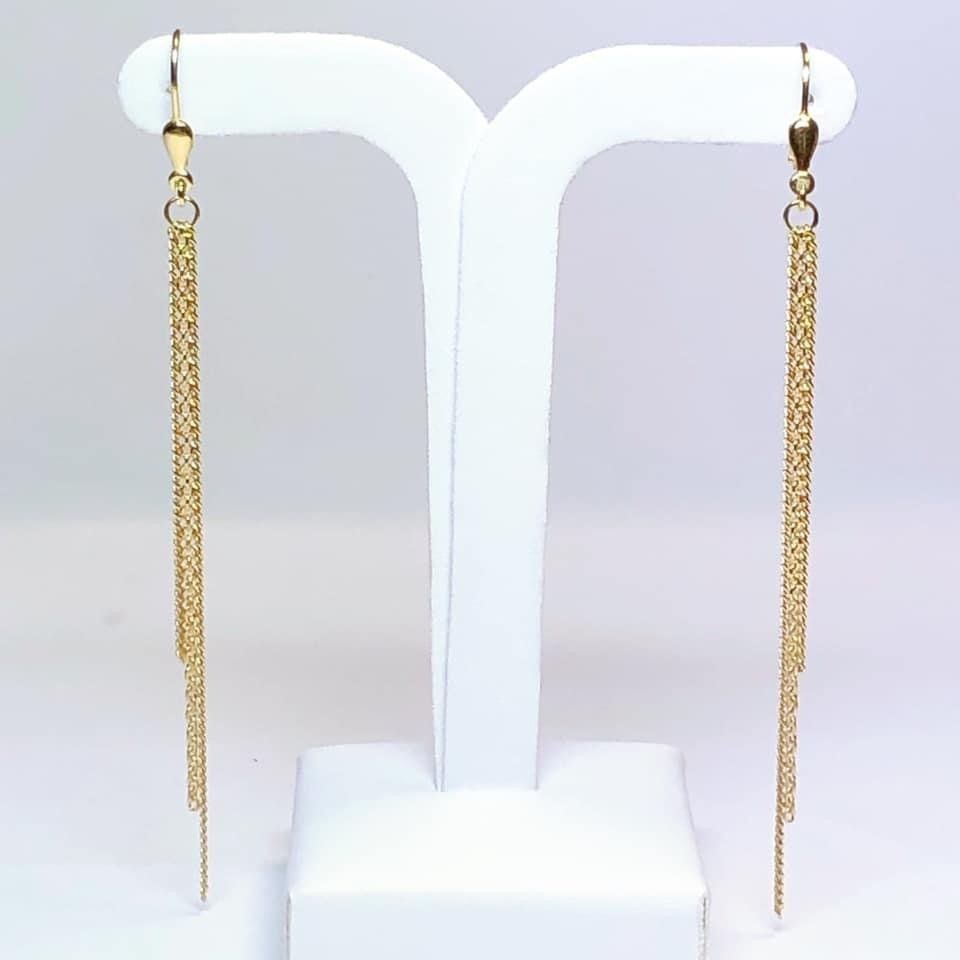 Boucles d'oreilles chaines pendantes système dormeuses en orjaune 750 millième.