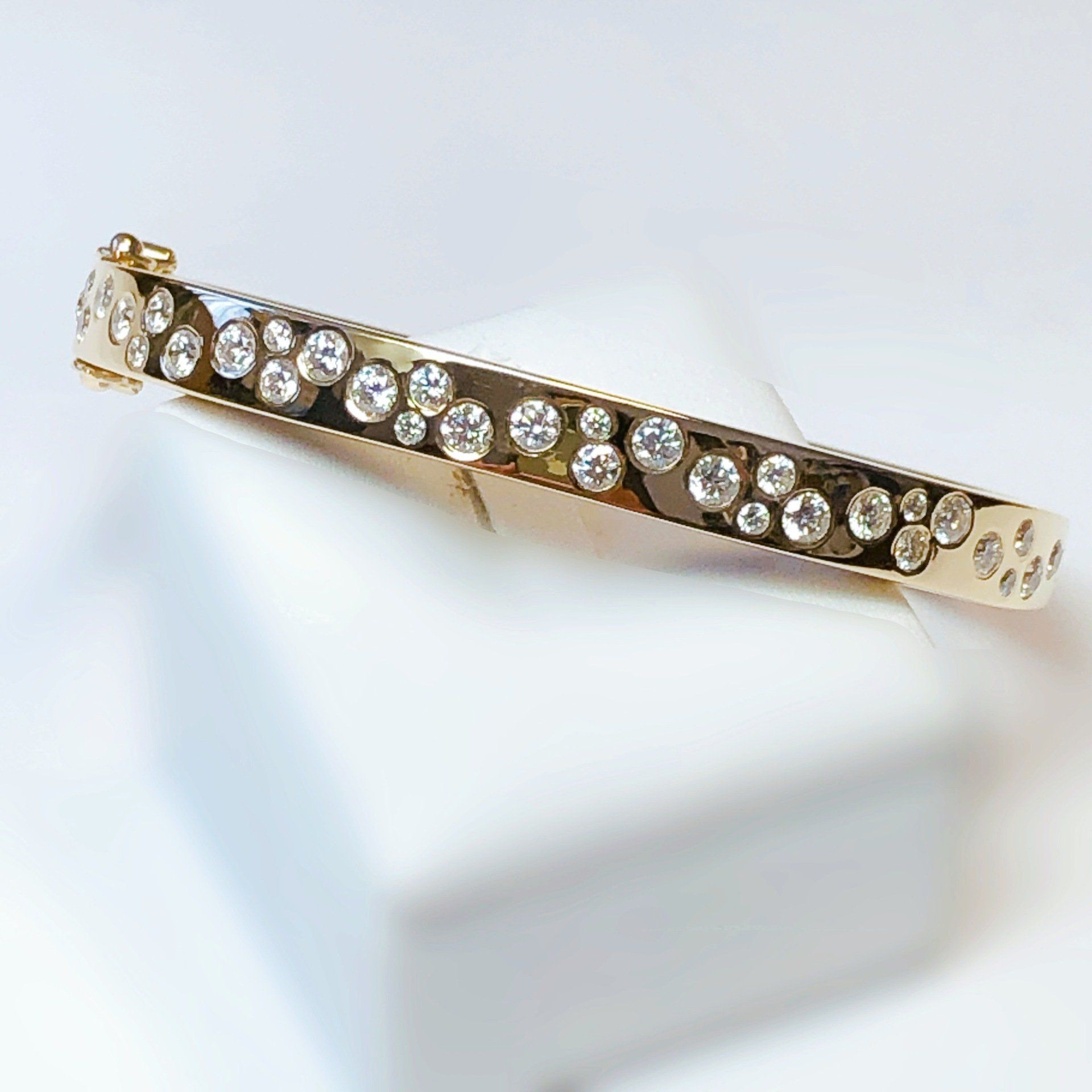 Bracelet à charnière en or jaune 750 millième, serti de diamants.