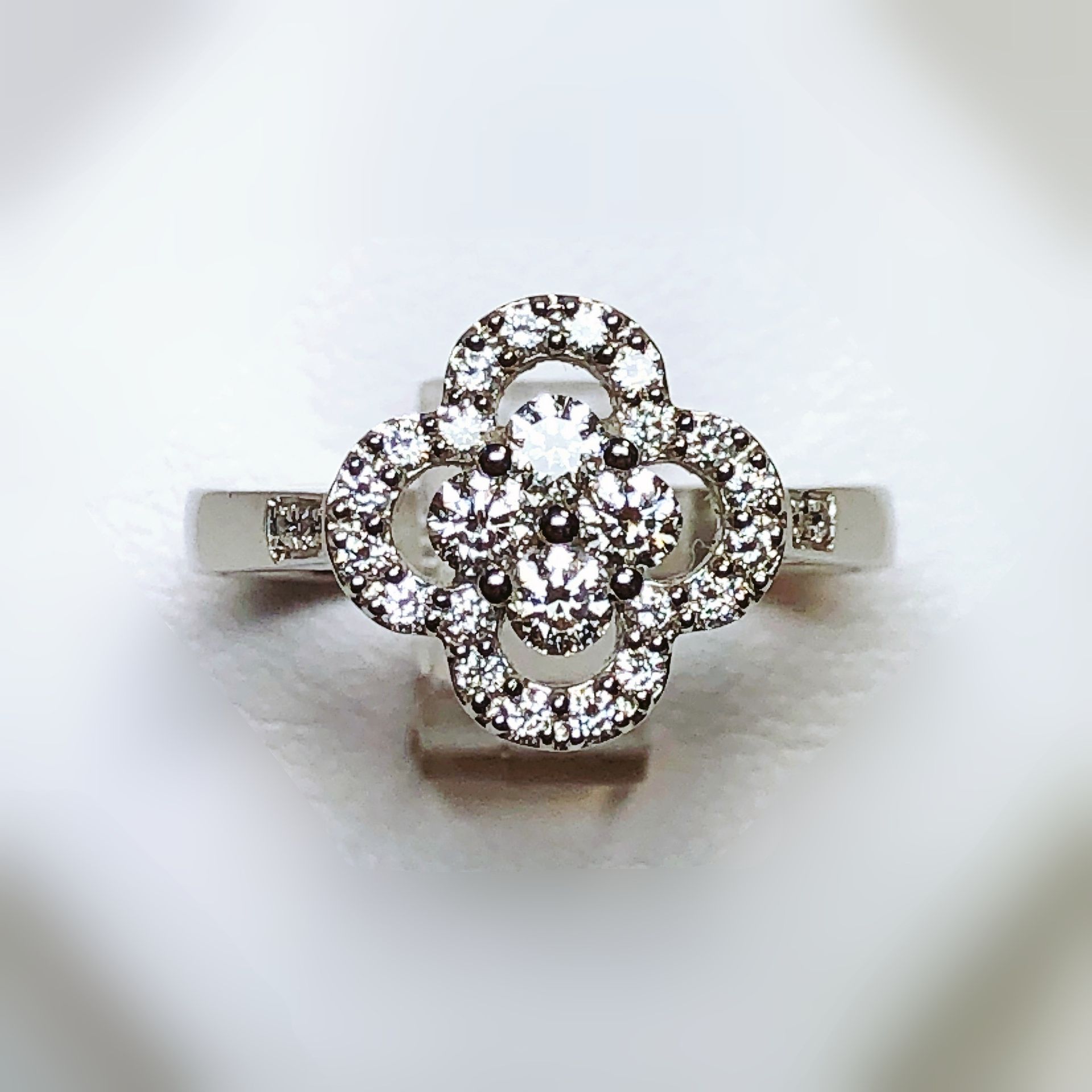 Bague en or blanc 750 millième sertie de diamants.
