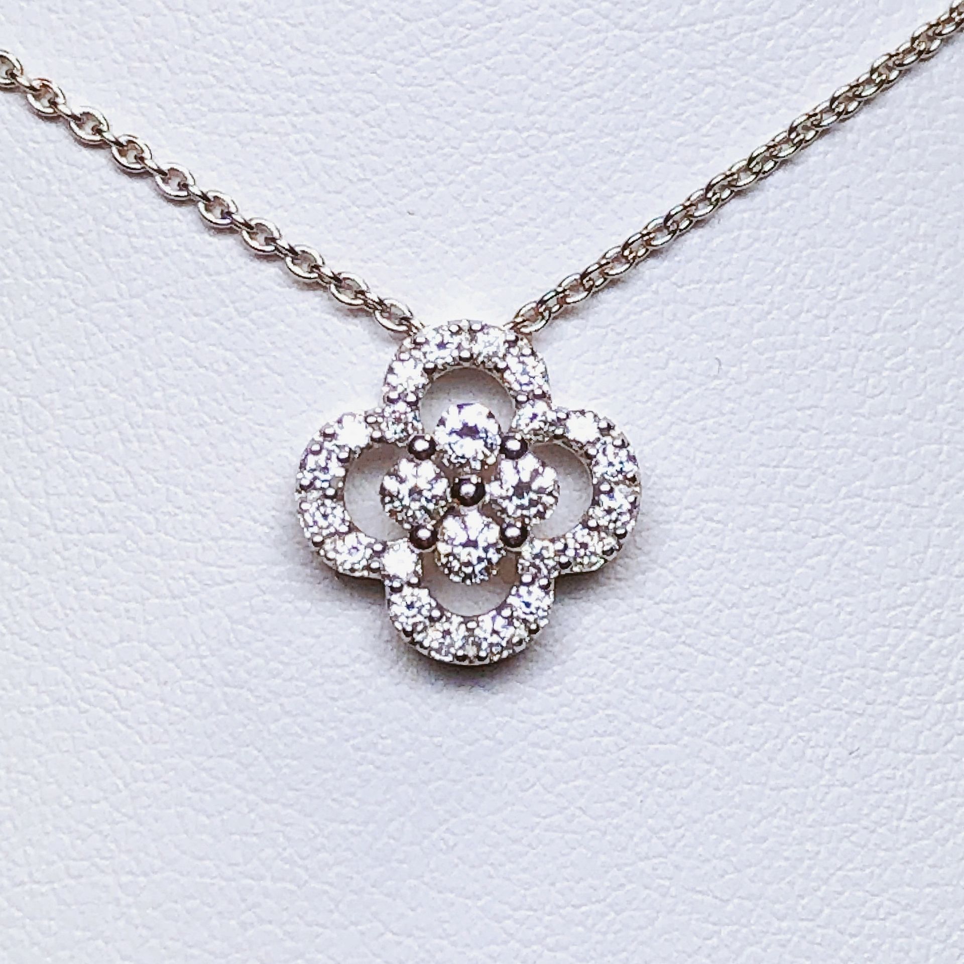Colliers en or blanc 750 millième, sertis de diamants.