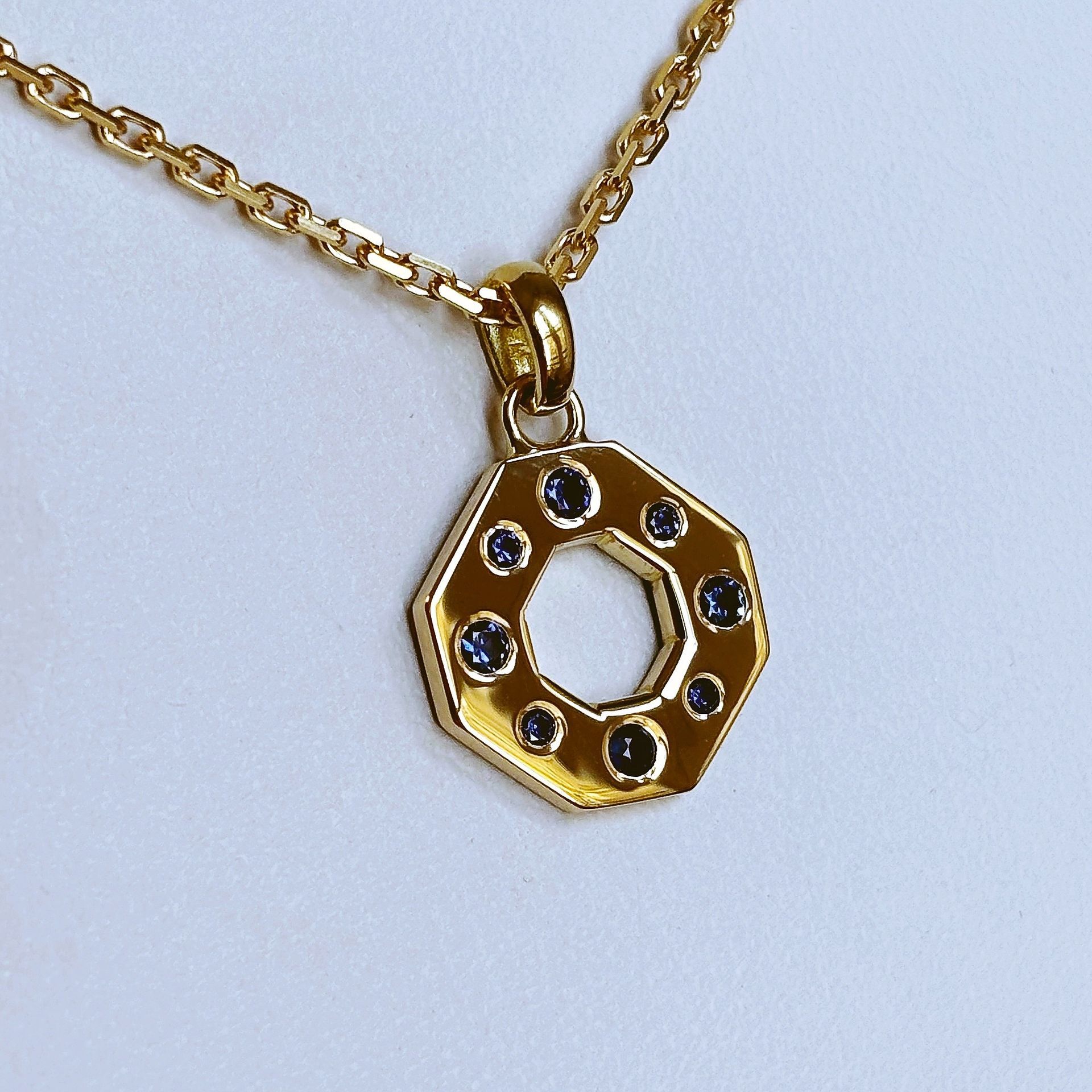 Pendentif or jaune 750 millième, serti de spahirs.