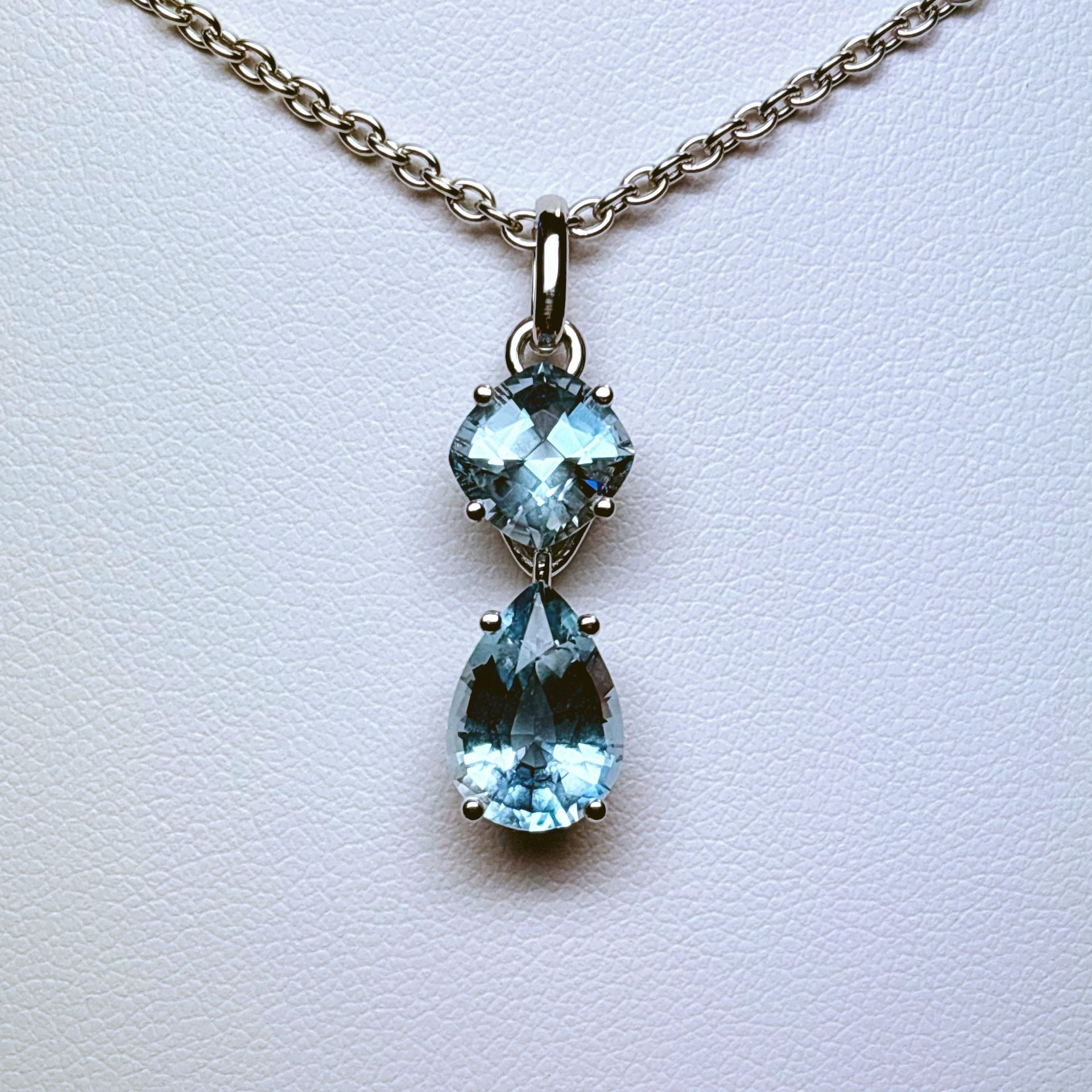Pendentif en or blanc 750 millième, serti d'aigues-marines.