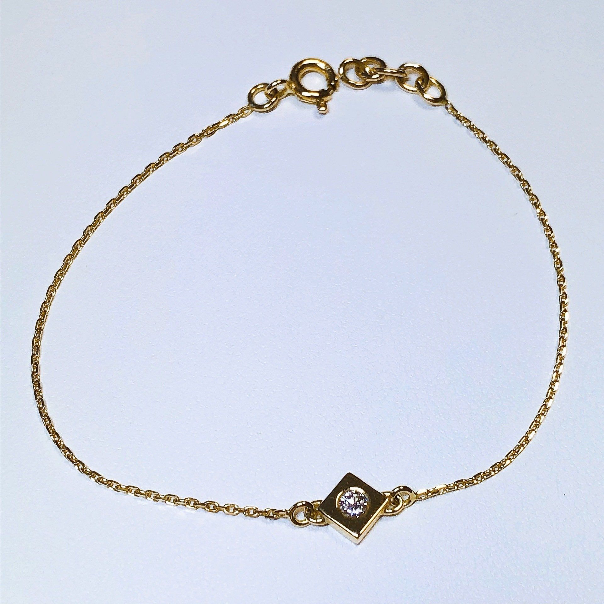 Bracelet en or jaune 750 millième, serti d'un diamant.