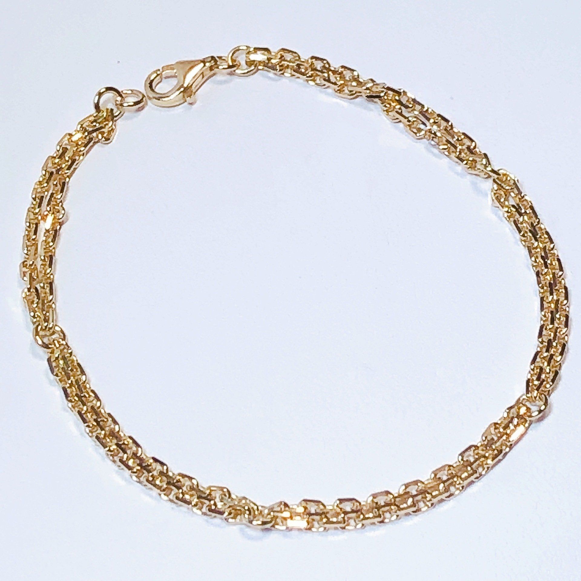 Bracelet chaine maille forçat double rang, en or jaune 750 millième.