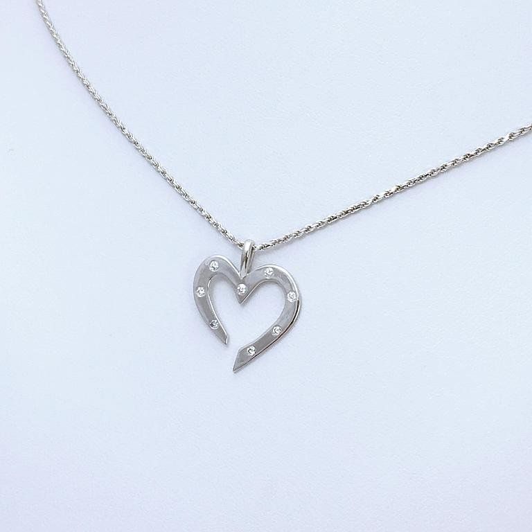 Pendentif coeur ouvert en or blanc 750 millième serti de diamants.