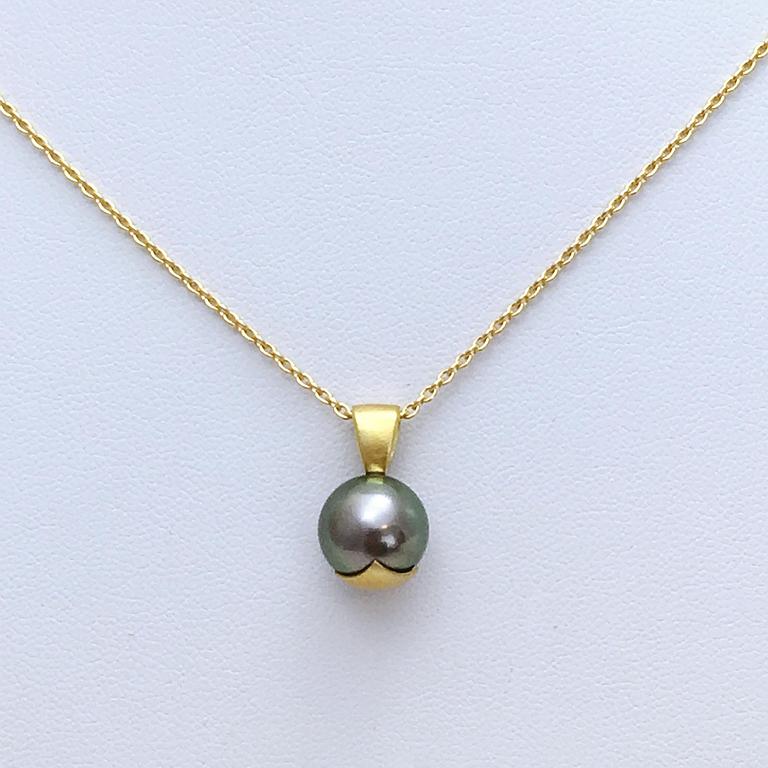 Pendentif en or jaune 750 millième et perle de Tahiti.