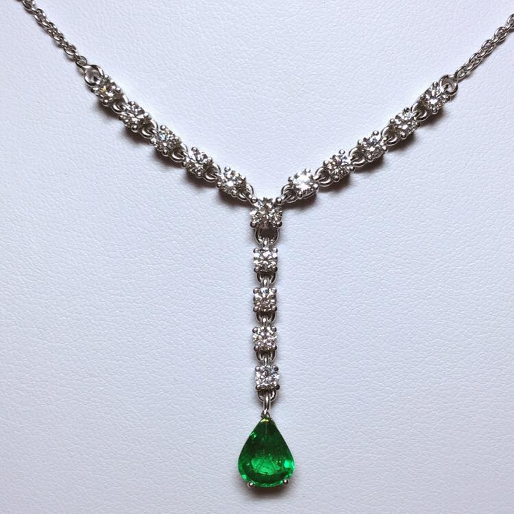 Pendentif en or blanc 750 millième, serti d'une émeraude et de diamants.