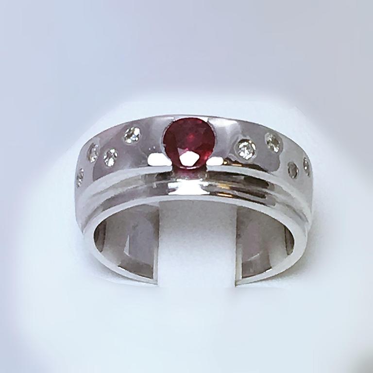 Bague en or blanc 750 millième, sertie d'un rubis et de diamants.
