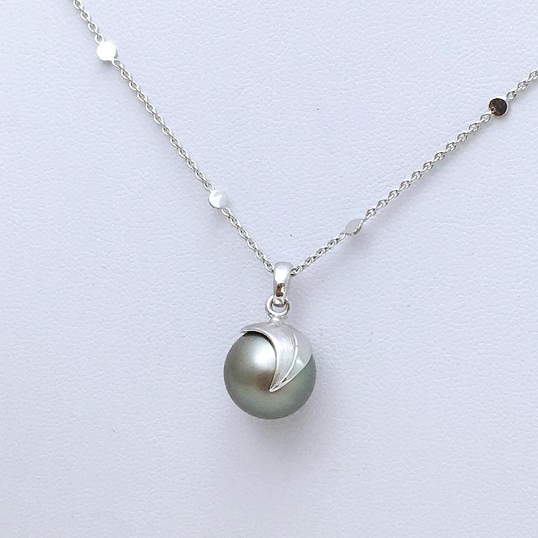 Pendentif en or blanc 750 millième et perle de Tahiti.