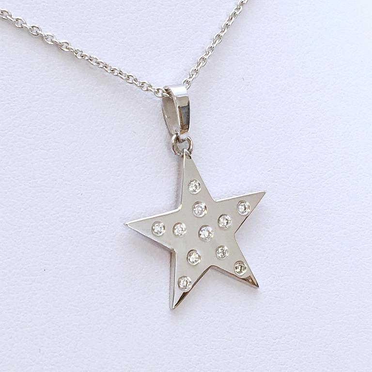 Pendentif étoile en or blanc 750 millième, serti de diamants.